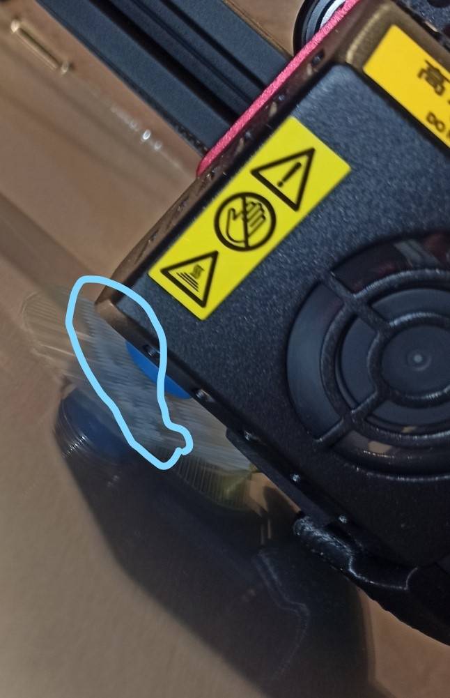 Bonjour à tous, Cette nuit j'ai voulu imprimer avec un fil en bois un objet pour faire tenir mon casque l'impression à très bien débuté (trop beau pour être vrai). Mais au réveil, l'imprimante imprimait dans le vide, comme si rien ne sortait, j'ai remarqué quelque chose sur la buse, comme si c'était caramélisé. J'a tenté de nouvelles impressions, rien n'y fait... J'ai essayé de changer la buse mais je ne sais pas comment m'y prendre (même avec les tuto, il n'y en a pas en particulier pour mon imprimante). Lorsque j'insère le filament il y a comme une sorte de blocage, j'ai don tenté d'enlever le fil qui permet la liaison entre bobine et buse (fil bleu) mais je n'arrive pas à tout enlevé... Des solutions ? C'est le 2e problème en 2 jours de suite, ça commence à faire beaucoup (mais je ne perd pas patience!) Ci-dessous les photos explicatives! Bonne journée! (SVP : restez courtois, je suis nouveau de quelques jours donc j'essaye de bien faire mais c'est pas facile) -