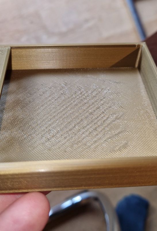 Bonjour, Je viens de faire l'acquisition d'une Ender 3 S1, ayant déjà une Ender 3 V2 avec des paramètres qui fonctionnent pas mal, j'ai transposé ce qui semblait cohérent et adapté le reste. Elle fonctionne parfaitement, au détail que je n'arrive pas à avoir une surface lisse sur la couche supérieure. J'ai un aspect assez rugueux et irrégulier, mais pas sur les coté (X et Y) seulement sur la couche supérieure. Les premières couches sont cependant parfaites. J'ai refait une mise à niveau de mon bed à plusieurs reprises, avec un auto leveling avant chaque impression (G29) => pas d'amélioration J'ai fait varié la température du bed ainsi que de la buse => pas d'amélioration J'ai pas essayé la fonction étirage mais j'arrive à faire un très bon résultat sur ma Ender 3 V2 sans, y a pas de raisons que ca fonctionne pas sur la S1. J'ai refait plusieurs impression à différents endroit du plateau => toujours même résultat... Voici mes paramètres d'impression en PLA 1,75 : hauteur couche : 0,2 épaisseur du dessus/dessous : 0,8 couches supérieures : 4 remplissage : 17% température d'impression : 203°C température plateau : 55°C vitesse impression : 55 vitesse déplacement : 110 vitesse impression dessus : 27,5 rétractation : 0,9 vitesse retractation : 40 vitesse ventilateur : 100 N'hésitez pas à me dire si un paramètre semble aberrent ou optimisable. Est ce que le ventilateur ne souffle pas trop fort lors de ces couches de finition, vu qu'il est quasi horizontal sur la S1 ? Un petit coup de pouce svp