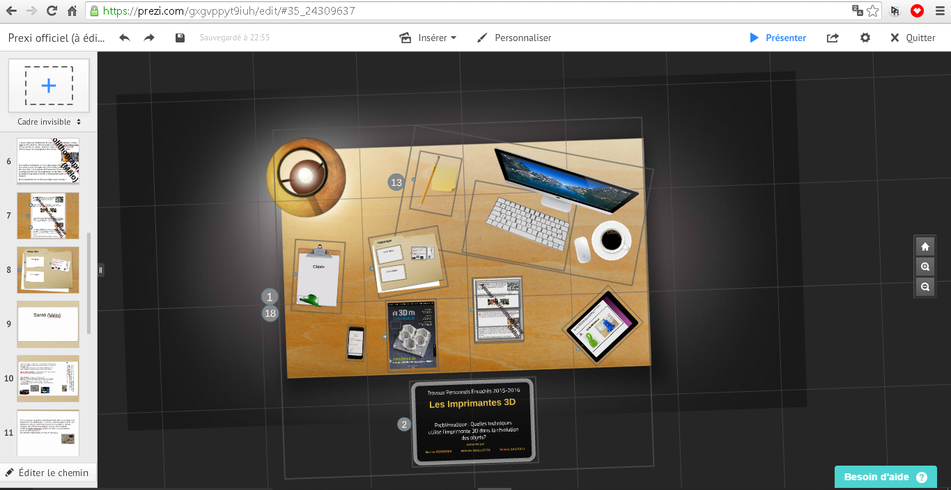Bonsoir, Je viens ici, si une âme charitable veut bien, demander une photo d'une imprimante 3D toutes marques de tailles pour bureau (ex : Replicator). Bien sur ils en existent des milliers sur Google mais je recherche une photo vue de haut pour un examen et l'insérer sur un Prezi (voir ci-joint) et donc j'aurais besoin d'une photo de haut. Comme le sujet est bien sur l'imprimante 3D, bah voila. Ca serait hyper aimable que quelqu'un puisse me procurer quelques photos. Je vous remercie, cordialement.