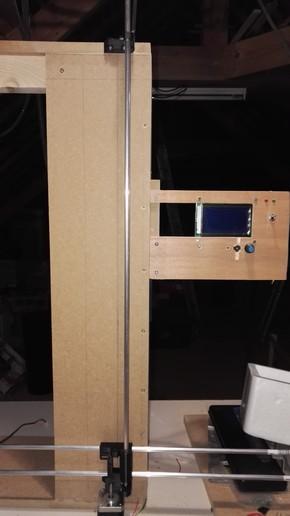 Salut à tous Bon je vous présente ma bête et sa fabrication pour l'instant elle imprime 200 mm*200 mm*200 mm il est prévu que je la fasse monter a 500 mm pour l'axe des Z et que j'élargisse les X Y Après plusieurs recherche je me suis inspirer de ce lien pour m'aider a la fabriquer http://vvinch.blogspot.fr/2013/08/assemblage-du-cadre-en-bois.html que je remercie beaucoup voici mon cadre avec son emplacement alimentation et Arduino et le support écran la mise en place des axes L'extrudeur la cela commence a prendre forme c'est cool le Lit une fois tous brancher le premier test sans réglage trop hâte de test et avec quelque réglage et un lit avec du sucre liquide voici ma premier impression réussit je vous rajouterai sont évolution et ces galères car la je lui les mit un BLTouch et galère dans les réglages et si vous voyer des truc bizarre j'essaierai de vous répondre hésiter pas sur les commentaires je suis preneur pour les améliorations merci et la voila avec sont nouveau plateau fait ce week-end