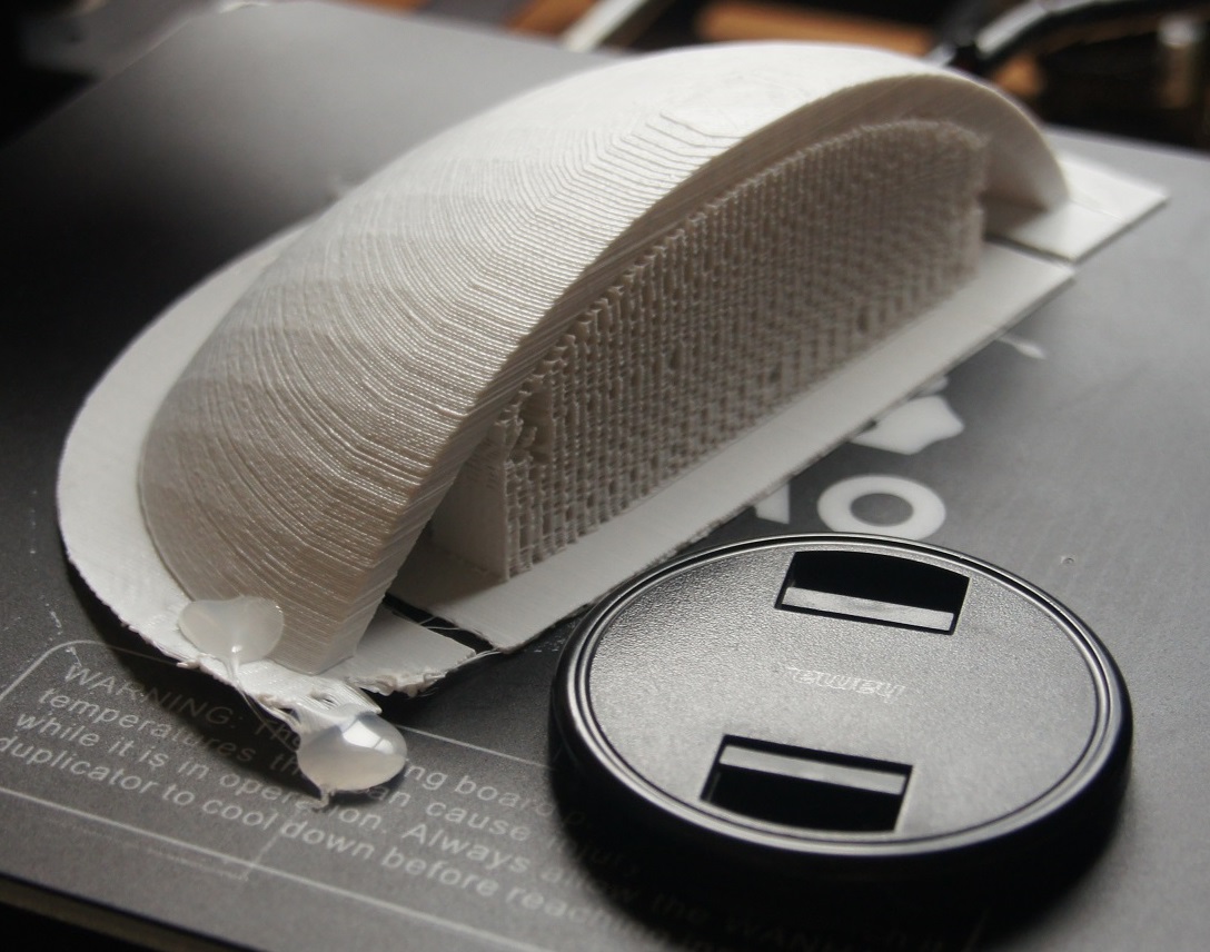Bonjour, je me prépare pour le carnaval du lycée avec une tenue de Boba Fett de la trilogie Star Wars. J'ai l'habitude de faire mes déguisements en tapis de sol (je suis du milieu du GN), mais là je butte sur le casque. Et comme j'ai une printeuse depuis un mois, que j'ai trouvé les plans du casque (ici : lien vers Thingiverse), je me suis dis pourquoi pas ! Après calcul j'estime en avoir pour 10 jours d'impression (9 des pièces dépassent les 8h d'impression), avec un total d'environ 87h (sans compter les petites pièces de 2~3h qui prendront une quinzaine d'heure). Je n'ai pas encore fait l'estimatif pour la quantité de fil consommé. Par rapport aux fichiers d'origine, j'ai coupé les 2 hémi-dômes en 2 (dans le sens de la hauteur) avec netfabb de manière à réduire la quantité de support. Le collage sera effectuée avec de la colle chaude, puis le revêtement finale sera un enduit de résine polyester renforcée de fibre de verre (objectif triple : protéger le PLA de la dégradation au cours du temps, renforcer le casque, lisser la surface pour un meilleur rendu). Printeuse : Wanhao Duplicator i3 ; épaisseur des couches : 0.25 mm (rapide). Collage des pièces sur le raft à la colle chaude.