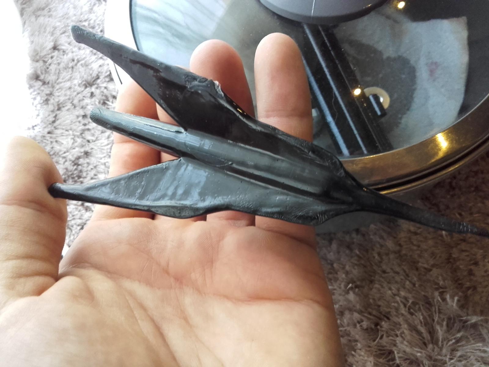 nicolas65 Posté(e) Septembre 7, 2017 Posté(e) Septembre 7, 2017 excellent sujet ca ne fait que 2semaines et demi que j'ai une imprimante 3d mais j'ai déjà munitions en stock en coneries il y a 2h environ j'ai encore ruiné une piece de 18h d'impression en ABS avec l'acétone je commence par mon plus beau fail ? un double fail qui m'a couté cher, pas en matière mais en dégâts trop d'espace entre les supports et les pales, arrivées sur les parties inclinées des pales, c'était donc dans le vide à quelques mm des supports, l'abs s'est levé, a tapé les buses de refroidissement, on voit l'impact sur la deuxième photo et décalage de l'ensemble de l'impression mais c'est pas fini, bon faut décoller ce raté après de longues heures d'impressions et 1 lokbuild à la poubelle