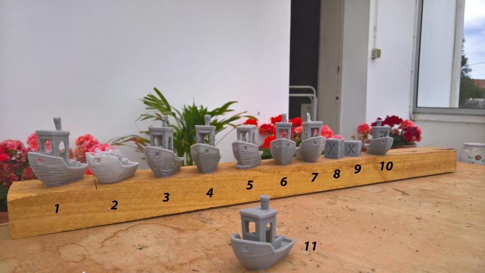 Sky Posté(e) Septembre 6, 2017 Posté(e) Septembre 6, 2017 (modifié) * La Galerie des Horreurs * Un petit thread pour présenter ma (et la votre aussi si vous en avez une!) Galerie des Horreurs ! (Parfois connu aussi comme "courbe de progressions des impressions!") Benchy 1 a 7 + xyzCube 8 : Pendant le montage de ma prusa, je regardais beaucoup de forums et prennais des notes dans la configuration du Slic3R. En gros débutant ne sachant pas ce qu'il fesais j'ai copier/coller des settings qui était "bon" pour quelqu'un ... dans ces settings il y avais un petit M92 X80.00, M92 Y80.00, M92 Z3200... J'ai remarqué qu'au 6eme benchy qu'il fallais mesurer et que les fenetres devais etre Carré/Ronde, et pas Rectangle/Ovale. Au 7eme Benchy et au xyzCube 8 j'ai update le firmware avec une valeur pour l'axe Z differente, mais rien a faire.... c'est qu'apres avoir imprimer ce Cube que j'ai penser a regarder ce que j'avais comme config dans le Slic3R et qui donc sortais un gcode qui "écrasais" les settings du Z du firmware... /clap /clap /clap Benchy 1 : Un peu tordu et manque d'extrusion, j'etait quand meme content (215°/35%infill) Benchy 2 : La buse se bouche, mais comme j'avais baisser l'infill a 20% comme suggerer sur un forum, j'avais pas compris Benchy 3 : Maximum power, j'envoie l'infill a 75% et chauffe a 220°. Cette brutale méthode a du en plus apparement débouché la buse . J'etait assez fier du résultat... ouaip. Benchy 4 : Maximum power -5° mais avec un infill a 100% parce que la méthode bourrin ca marche... enfin c'est ce que je pense sur le moment. J'ai baissé la temp parce que j'avais commencer a comprendre que c'etait trop fort. Benchy 5 : Je baisse la temperature a 200° et l'infill a 30%, l'impression foire totalement et s'arrete avant la cheminée, l'imprimante met une erreur. Merde! Benchy 6 : Je change la buse pour une nouvelle de 0.3, et je garde quasi les meme settings qu'au 5, ca va jusqu'au bout et j'suis vraiment content du résultat. Benchy 7 : Je baisse la temp a 195 et j'imprime en 0.1 pour une impression plus longue mais avec une meilleure qualitée "surement". La cheminée foire, et je m'appercois que le benchy est "étiré" vers le haut par rapport a celui du site officiel. Merde, mon Z foire. xyzCube 8 : Ca foire encore, putain d'axe Z qui écoute pas quand je lui verse un nouveau firmware! xyzCube 9 : Victoire, j'ai trouver que le gros nul que je suis a copier/coller des settings trop pret et que depuis tout ce temps mon Z est étiré de 20%... bon au moins maintenant le cube fait bien 200/200/200 et pas 200/200/250 Benchy 10 : 195° / 30% infill et un ventilo d'installé. Et j'ai vu qu'il fallais pas dépasser en hauteur par couche 80% de la taille de la buse, du coup au lieu d'etre en 0.3 sur une buse de 0.3, je lance l'impression en 0.2 (sur buse 0.3) c'est carement beau! Mais ca fait des toiles d’araignée. Benchy 11 : En baissant a 190°, et en reglant un peu mieux la retraction sur le Slic3R, ca filoche moins! La j'commence a etre fier de mes Benchy ! Depuis avec ces derniers settings du Benchy 11 j'ai commencer a imprimer pas mal d'autre truc (Tortue de thingiverse, quelque pinces a cheveux, nouveau support de ventilateur, un "ecrou" pour une poubelle qui était perdu...) et j'suis assez content, meme si y a encore pas mal de détails sur la qualité d'impression a regler A votre tour, envoyez vos collections de monstres, ou juste le dernier monstre fraichement sorti du four ! Modifié (le) Septembre 6, 2017 par Sky 1