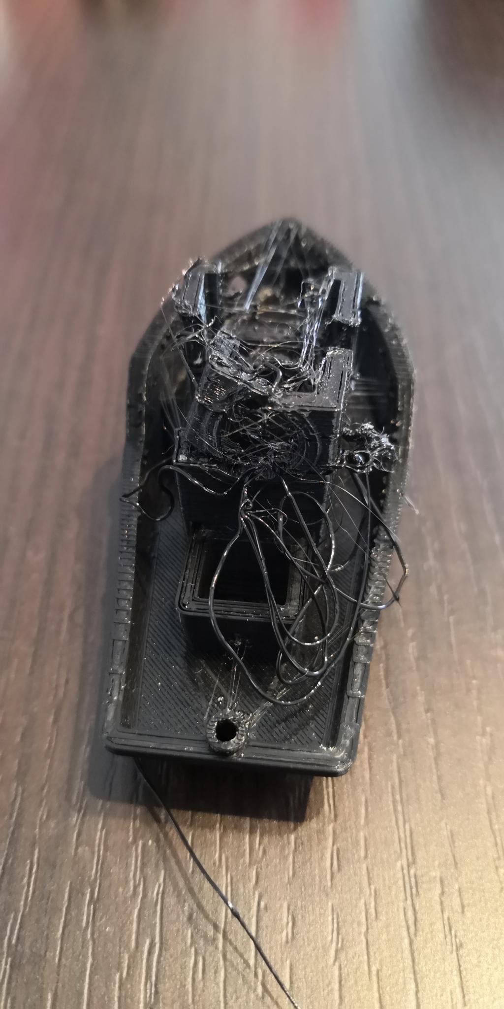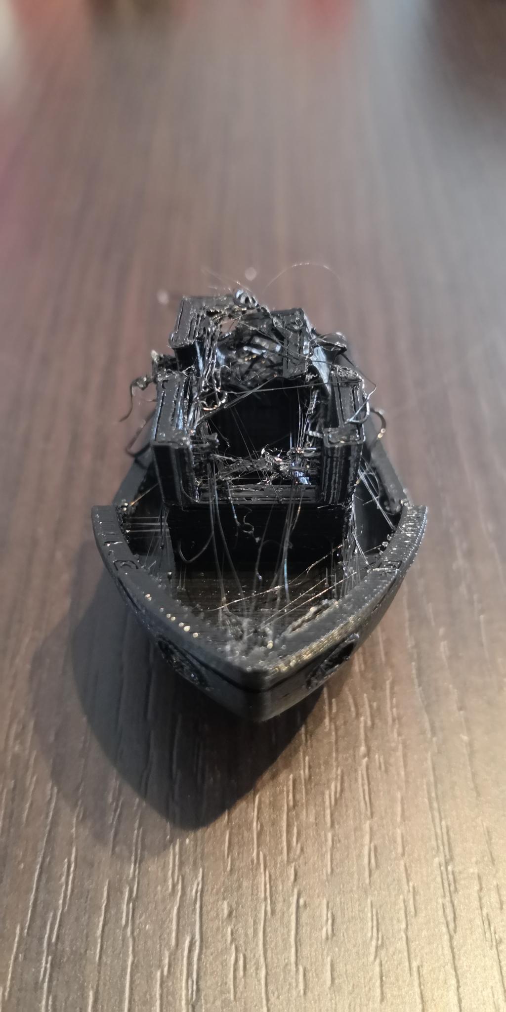 David M. Posté(e) Juillet 10, 2019 Posté(e) Juillet 10, 2019 Je viens compléter ce topic avec un beau fail de mes débuts ^^ Un joli Benchy Boat dont le GCode a foiré (j'ai pas compris pourquoi). Il y a une couche qui s'imprimait dans le vide, totalement en dehors du bateau (j'ai regénéré le gcode plus tard, sans rien changer, et c'est passé nickel, mis à part mes problèmes de warping, mais ça, c'est traité dans un autre topic). Du coup, ça a bien foiré avec un beau tas de chewing-gum... 1