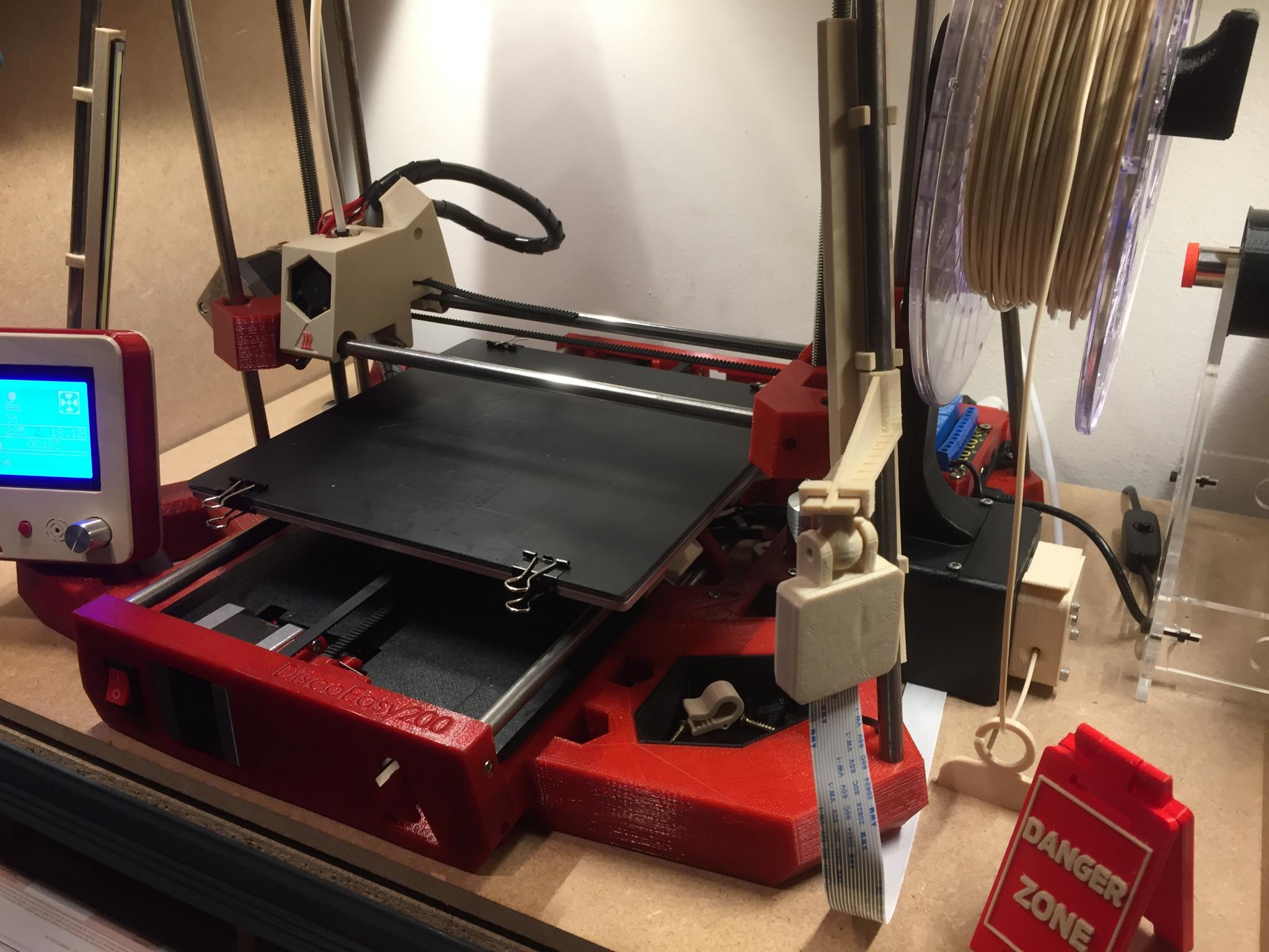 Baroudeur Posté(e) Octobre 30, 2017 Posté(e) Octobre 30, 2017 (modifié) A vendre imprimante Dagoma Disco Easy 200 série Bordeaux avec garantie en cours (achat Mai 2017) Plusieurs modifications ont été apportées : - Ultimod par Bezain pour une meilleure stabilité, même colori que l'imprimante. Godet accessoires inclus. Impression impeccable avec cet accessoire (pièces imprimées avec visibles) - Extrudeur déporté sur la droite pour faciliter l'introduction du filament, il possède un blocage intégré pour retirer ou insérer du filament sans avoir besoin de le maintenir. Le moteur de l'extrudeur est protégé dans un boitier surmonté par un support de bobine latéral. - Ecran Dagoma, avec support bicolore aux couleurs de l'imprimante. L'écran indique le numéro de couche. - Supports et leds intégrés avec alimentation 12V. Les branchements de l'imprimante pour l'alimentation et la prise USB sont tous déportés vers l'arrière de la machine sur des plaques intégrées au chassis. - Support pour caméra raspberry - Plateau avec Printinz bicolore (un coté noir, un blanc) avec pinces de fixation. Le Printinz permet des impressions sans décollement de la pièce, pour la retirer il suffit de le tordre très légèrement. Etat impeccable, peu d'impressions à son actif, livrée montée avec tous les accessoires d'origine et facture. Prix 200€, disponible région Aquitaine, à retirer sur place de préférence. Quelques vues supplémentaires : (Extrudeur déporté avec blocage et support de bobine) (Prises dédiées à l'alimentation de l'imprimante, aux leds et branchement USB sur face arrière) (Exemple d'impression obtenue avec le Ultimod installé et sur Printinz, pas de warping lors d'impression, même sur une impression longue) Modifié (le) Novembre 18, 2017 par Weiling