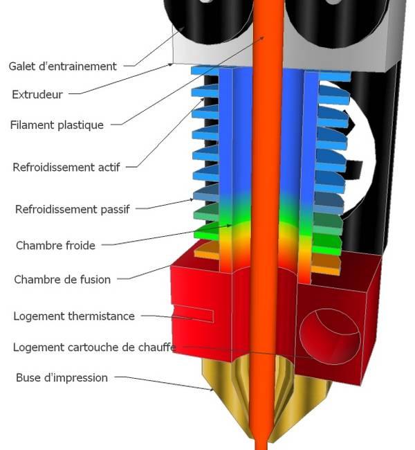 justin Posté(e) Aout 27, 2017 Posté(e) Aout 27, 2017 Ba pour moi le problème viens entre le refroidissement passif et chambre de fusion. (voir schéma 1 ci-dessous) Ce qu'il ce passe (hypothèse) c'est que le filament entre le refroidissement et la chambre de fusion, pour moi, il viens à ce ramollir, du faite de la chaleur ce qui est normale mais je pense qui ce ramolli trop tôt. Ce qui fait que le filament ce déforme avant de rentrer dans la champ de combustion. Et créer un bouchon. (voir schéma 2 ci-dessous)Schéma 1: Schéma 2 :