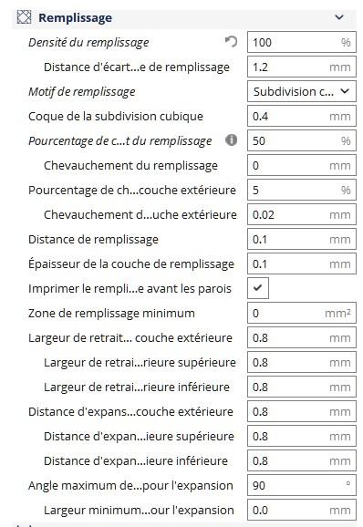 baikunz Posté(e) Novembre 17, 2017 Auteur Posté(e) Novembre 17, 2017 Il y a 8 heures, Marlequeen a dit : Je ne suis pas sure de répondre correctement à ta question, mais en tous cas dans Cura 3.0.4 tu peux paramétrer l'infill en fonction de son approche des parois. Je l'ai en anglais et ce paramètre s'appelle "gradual infill steps" dans la catégorie "infill". Par exemple, pour un print détaillé, j'ai mi un infill à 30% et 2 de steps, le résultat est intéressant, avec 3 niveaux de densité de maillage selon l'approche des parois (donc y compris en X, Y) et des top layers (en Z donc). Par contre pas testé avec Simplify3D, que je n'ai pas acheté ! Yes c'est exactement ça ! Donc ça existe sous Cura alors ! Dommage que ça ne soit pas présent sous S3D J'ai vraiment du mal à me décider entre ces 2 slicers... Il y a 8 heures, rmlc460 a dit : Par contre, c'est pas tout à fait dans le sujet, mais une fonction de S3D, c'est de pouvoir faire des boites virtuelles avec des remplissages différents. Particulièrement adapté si on veut faire des pièces techniques qui ont des axes, par exemple. Dommage que Cura n'ait pas encore cette option! Oula, il va falloir que tu m'expliques ça Pour l'instant la seule chose que j'ai pu trouver qui s'en approche, c'est plusieurs process avec différents infill différent pour chacun. Mais c'est loin d'être aussi intéressant que ce que propose Cura.