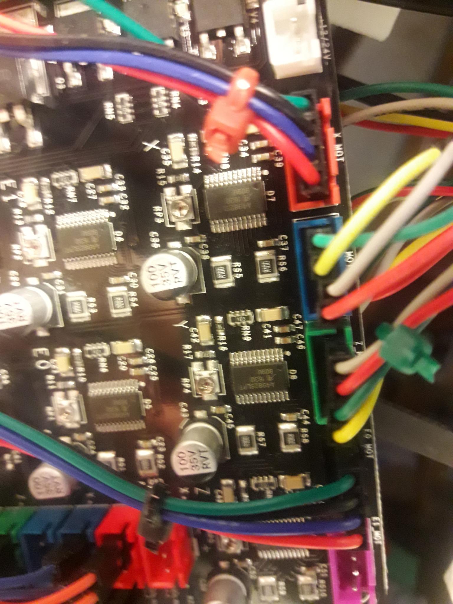 RIPOFE Posté(e) Février 20, 2018 Auteur Posté(e) Février 20, 2018 J'ai commencé à débrancher pour voir une éventuelle erreur dans le montage, et là j'ai remarqué une différence sur le branchement du moteur Z. Ancien branchement (gris, rouge, vert, jaune) Dernier branchement (vert, jaune, gris, rouge) Cette différence de branchement peut-il expliquer mon problème ? Cela me surprendrait car je n'ai pas pu tester les moteurs avec que ça grille, mais on sait jamais. Quoi qu'il en soit quel est le bon branchement ?