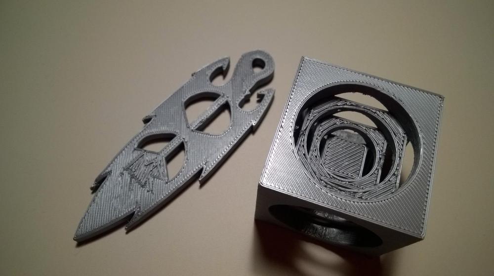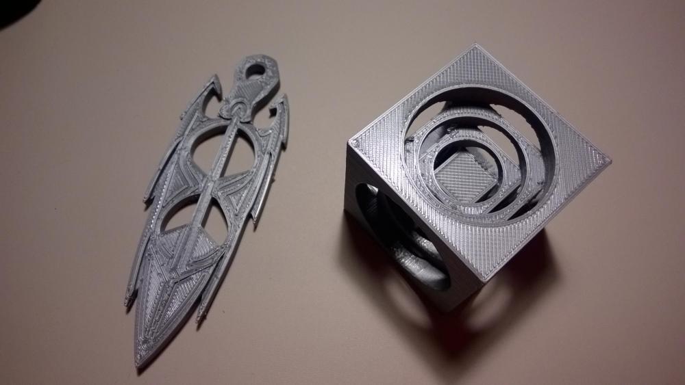 Impression en PLA, le cube à été imprimé en 0,15 mm et l'amulette en 0,20 mm .
