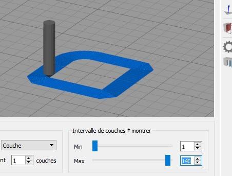 yopla31 PostĂ©(e) Mars 16, 2018 Auteur PostĂ©(e) Mars 16, 2018 Ok, merci pour tes conseils. DĂšs ce soir, je teste la "Trump" Tower ! Pour le multiplicateur, comme tu peux le voir entourĂ© de rouge sur la copie d'Ă©cran de la simulation Cura, la colonne jaune dans l'angle arriĂšre gauche, est la seule partie imprimĂ©e. On distingue la silhouette grise de la piĂšce, mais seul les partie en jaune sont imprimĂ©es ! Donc cette colonne s'effondre sur elle-mĂȘme, en une "petite crotte" !  Donc aucun intĂ©rĂȘt Ă prendre en photo D'ailleurs, l'autre capture d'Ă©cran reprĂ©sente la simulation de print sur Simplify 3D, et tu peux voir que S3D en est Ă la 140Ăšme couche, mais la reprĂ©sentation de la buse reste au niveau de la couche 1 ! Le rĂ©sultat attendu devrait ĂȘtre comme montrĂ© par @nicolas65 : mĂȘme si nicolas65 l'a agrandie en hauteur pour s'en servir de temp tower, si j'ai bien compris ses explications.