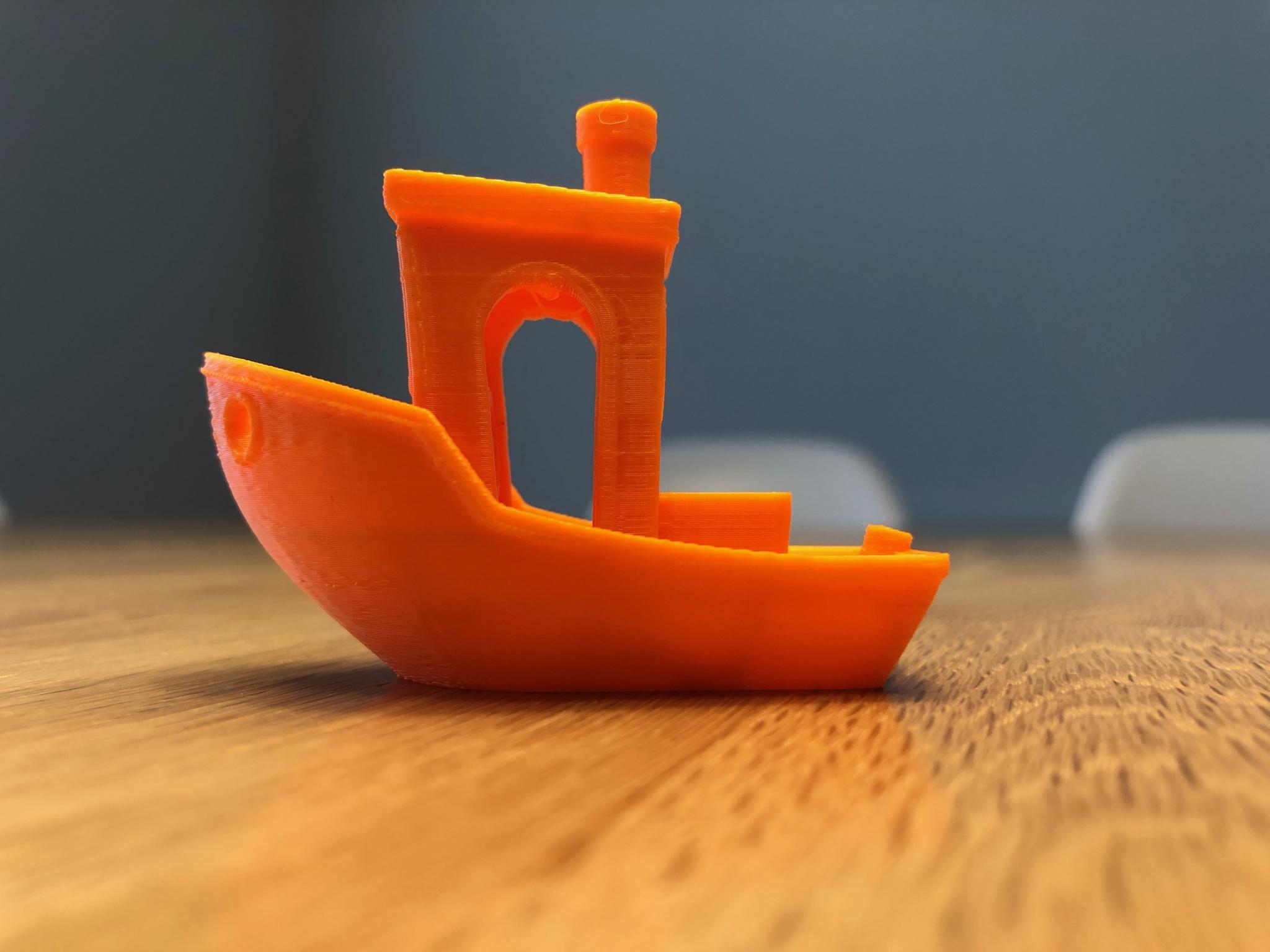 Voici mon benchy imprimé en PLA Orange IceFilm 200° avec les settings par default de CURA en 0.15mm