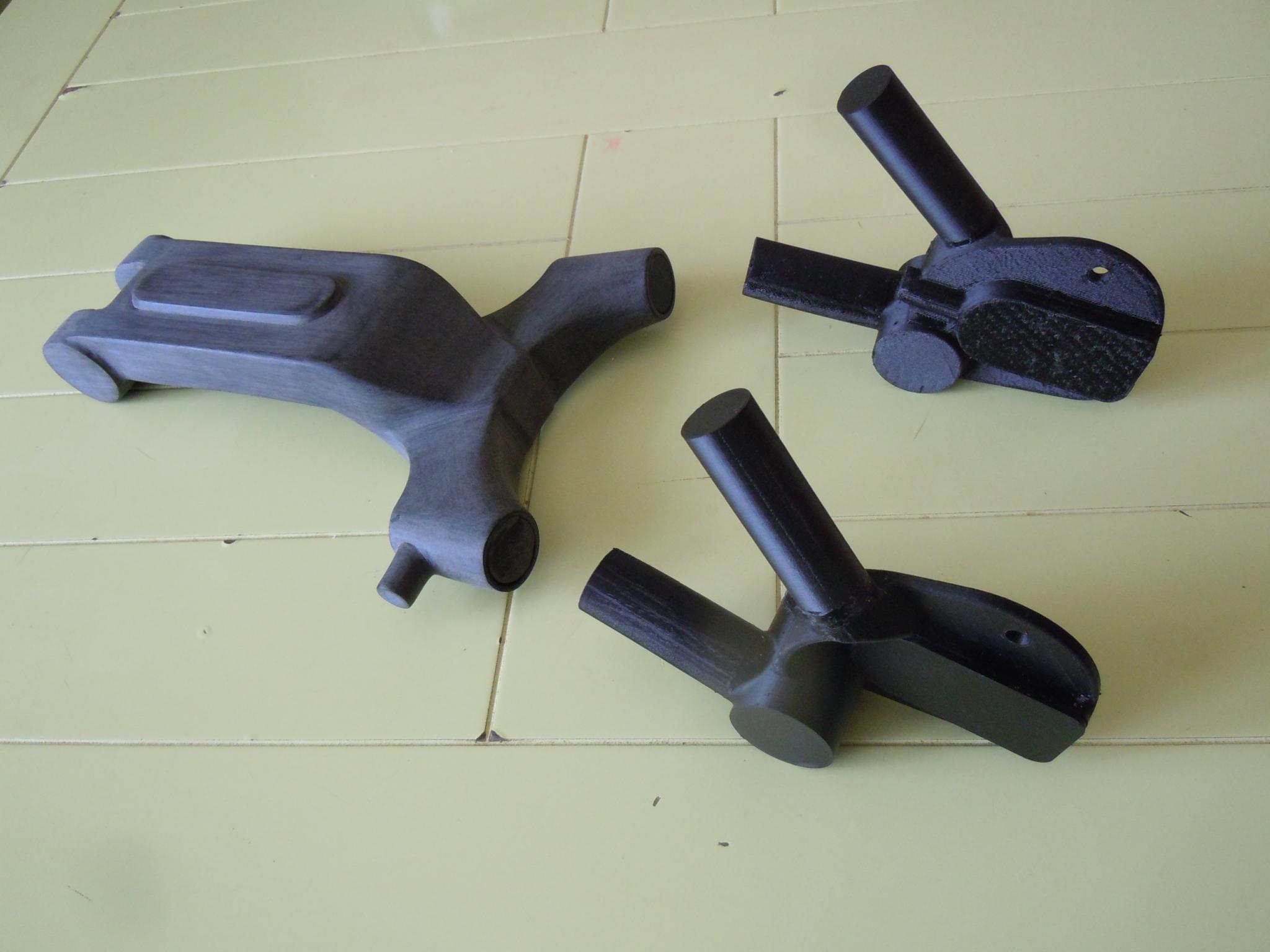 Herve64 Posté(e) Juin 17, 2018 Posté(e) Juin 17, 2018 (modifié) Bonsoir à tous, Un des copains de notre club de voitures et motos anciennes a trouvé dans une bourse d'échange un moteur complet de moto TERROT ... Après de nombreuses recherches, il s'est avéré que ce moteur avait été monté sur un des cinq modèles de compétition dont il ne restait aucun exemplaire. Les plans du cadre d'origine de 1923 ont été trouvés, ce cadre a une particularité au niveau de la fourche arrière qui induit une fragilité et a conduit à un accident et l'arrêt de ce modèle de cadre. Mon ami s'était mis en quête de quelqu'un pour lui modéliser les pièces en 3D en vue d'une impression future... Les fichiers "STL" furent réalisés et s'est par hasard qu'il a su que je possédais une imprimante 3D. j'ai donc réalisé les différentes pièces en les modifiant pour qu'elles puissent être utilisées pour faire des moules permettant de les couler en fonte d'acier. Il ne reste alors plus qu'à réunir ces pièces à l'aide des tubes ad hoc pour finir l'assemblage du cadre. Place aux photos... Tube de colonne de direction Support moteur Support de boite Raccord sous selle avec ses deux tubes vers l'avant (le réservoir était en sandwich entre deux tubes) configuration très fréquente des motos de ces années là Fourches arrières supports de roue le support moteur avec les fourches arrières... il ne manque que les tubes pour faire la liaison Toutes les parties devant être fraisées ont été bouchées pour faciliter le travail du fondeur. un autre copain du club se charge de réaliser ces fraisages Modifié (le) Juin 18, 2018 par Herve64 Complément d'information des photos 1