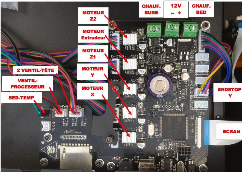 OUPS65 Posté(e) Aout 21, 2018 Auteur Posté(e) Aout 21, 2018 (modifié) Merci à YO! pour ses conseils . … cliquez sur la zone en bleu pour arriver au post concerné. ANYCUBIC I3 MEGA : les élémentaires..... et un peu plus dernière mise à jour : novembre 2018 La majorité des imprimantes 3D personnelles fonctionnent selon le principe FDM . Il est l’acronyme anglais de Fused Deposition Modeling qui signifie « modelage par dépôt de filament en fusion ». le principe est détaillé içi Avant toute chose, comprendre la chaîne : Quel que soit le programme que vous utilisez pour votre chaîne d'outils de modélisation 3D (CAO ) , tant que vous pouvez exporter un modèle solide , un trancheur peut le «découper» en code G, et le microprogramme Marlin fera de son mieux pour imprimer le résultat final a/ première étape : le dessin en 3D : de nombreux programmes permettent de dessiner en 3D : les meilleurs 2018 gratuits Ces programmes sauvent leurs fichiers sous le format .STL ( tout comme un document texte word sera sauvé sous le format .doc) Il est aussi possible de télécharger de nombreux fichiers tout fait ( voir rubrique «Site de téléchargement de modèles » ci-dessous) b/ deuxième étape : le trancheur ( slicer) : L’imprimante 3D crée le modèle en déposant du filament fondu couche après couche. Il faut donc découper le modèle à imprimer en couches plus ou moins fines. C’est le rôle du programme « trancheur ». ici aussi, il en existe de nombreux : Cura , Slic3r , Simplify3D, Skeinforge … les meilleurs 2018 Ces programmes génèrent ces instructions de découpes sous le format G-code. ( voir rubrique CURA ci-dessous). C/ troisième étape : le programme de commande de l’imprimante. Il faut enfin un programme capable de lire les G-Codes et de les utiliser pour commander les moteurs, l’extrudeuse, le chauffage, la ventilation, etc.. Ce programme est le MARLIN , utilisé par presque toutes les imprimantes qui nous concernent. Il existe en plusieurs versions. Anycubic : vidéo officielle de présentation de la I3 MEGA , le site Anycubic . N’hésitez pas à aller fouiller dans l’onglet « support & download ». page faceBook du constructeur , mail : support@anycubic3d.com ou larry@anycubic3d.com Présentation et tuto de démarrage : questions avant l'achat ok, sûrement un peu tard Mega I3 : présentation et guide de démarrage Impression 3D : Tutos de YO' : une mine d’infos admirablement présentées. La machine : La v2 a le plateau ultrabase, le double endstop, de meilleures connexions mais pas de capteur pour la mise à niveau du lit chauffant (heatbed) . détails en photos , glossaire définitions : extrudeur et hotend , composition de l'extrudeur et différence entre système Bowden ( d'origine) et "direct drive" voir aussi le point 1. Product overview du manuel fourni avec la machine le rôle du guide fil , zoom sur l'entrainement du fil , l'extrudeur en détail définitions : les ventilateurs de tête : Si on se place face à l'imprimante, celui de la hotend est celui de droite il se met en route à partir de 50 ou 60°C à la mise en chauffe de la buse…tu ne peux en aucun cas le gérer toi même c'est la carte qui le gère…. celui de gauche est celui de refroidissement de la pièce, il est géré par le g-code que tu as fait dans ton slicer ( Cura, …) ,habituellement on le met en route dès la 1ere ou 2é couche pour le PLA et on le met a 0 si on fait de l'ABS. Nb : un ventilateur 12v acheté séparément a en général 3 fils: Fil rouge : +12V, Fil noir : 0V (ou masse), Fil blanc ou jaune : non utilisé içi carte mère "trigorilla" (ancienne version) carte mère et stepper nouvelle version 32bits livrée en 2018 ( ventilateur retiré) : À noter : les connecteurs asiatiques sont souvent du type avec embases à détrompeur JST-XH, avec un pas de broche 2.00mm (ex : ventilo) ou 2.54mm (ex : cartouche chauffage tête) . Les connecteurs à sertir correspondant se trouvent facilement sur le commerce en ligne. voir détails içi la pince à sertir à utiliser est la PA-09 déballage et montage de l'imprimante exemple de check list de démarrage , voir aussi les guides à l’installation fournis avec la machine (sur la carte SD) . y ajouter les points repris ci-dessous. Mieux vaut prévoir … : ne pas hésiter à vérifier si toutes les vis sont bien serrées (pourquoi pas un peu de frein filet), idem pour les pièces de l'extrudeur , tous les connecteurs de câbles sont-ils bien enfoncés (même ceux invisibles car dans le caisson), la bonne tension (220v) est-elle correctement sélectionnée,… Attention : les fils électriques aboutissant dans un connecteur sont simplement enfoncés à l’arrière de ceux-ci. voici ce qui peut arriver ! Pensez à les «pousser » dans le connecteur. Astuce pour repérer les axes X, Y et Z Astuce : sortir complètement le tube qui guide le filament (tube PTFE) du gestionnaire de câble noir qui contient tous les câbles électrique pour la tête d'impression. Cela permet de rendre ce dernier plus mobile et de le coincer vers l'arrière afin qu'il ne gêne pas la montée. explications içi et aussi içi la première fois, vérifier l’axe Y avec le test de la vitre : Pourquoi et comment ? Si nécessaire, ajuster. autre approche du même problème. avant leveling : rendre l'axe Z // à l'axe X . N'hésitez pas à vérifier l'axe Z très régulièrement. faire le leveling après avoir fait chauffer le bed à 50°c durant 10 minutes. À noter que le point central du bed est souvent signalé comme légèrement déformé par rapport aux quatre coins. Merci à Bosco2509 Merci à Lion02 Comment faire un leveling ( =mise à niveau correcte du plateau par rapport à la tête ) ? nb : à refaire à chaque changement de buse ou de tête. petite video explicative ....... et aussi celle-ci . voir aussi : galère pour le réglage du plateau (bed) Astuce : pour un réglage aux petits oignons avec un comparateur n