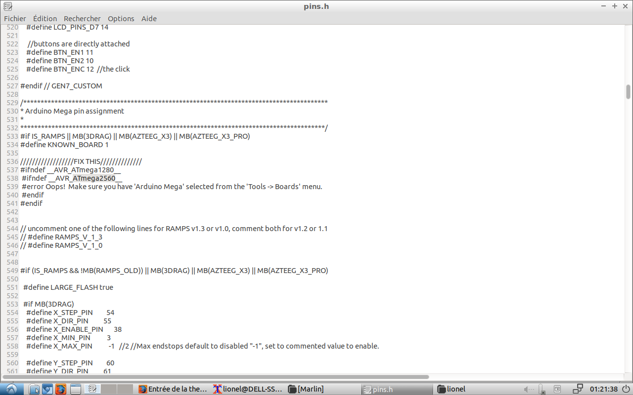 Jean-Claude Garnier Posté(e) Octobre 11, 2018 Auteur Posté(e) Octobre 11, 2018 Hello @Yo' et merci. J'ai vaguement commencé ce matin à regarder, mais là je peux plus avant ce soir. Déjà je ne trouve pas les mêmes "define" que toi dans pins.h... J'ai imaginé que dans Marlin 1.1.9 c'était ptêt différent, alors je suis revenu à la version précédente : même constat... J'suis un peu dépité, là.