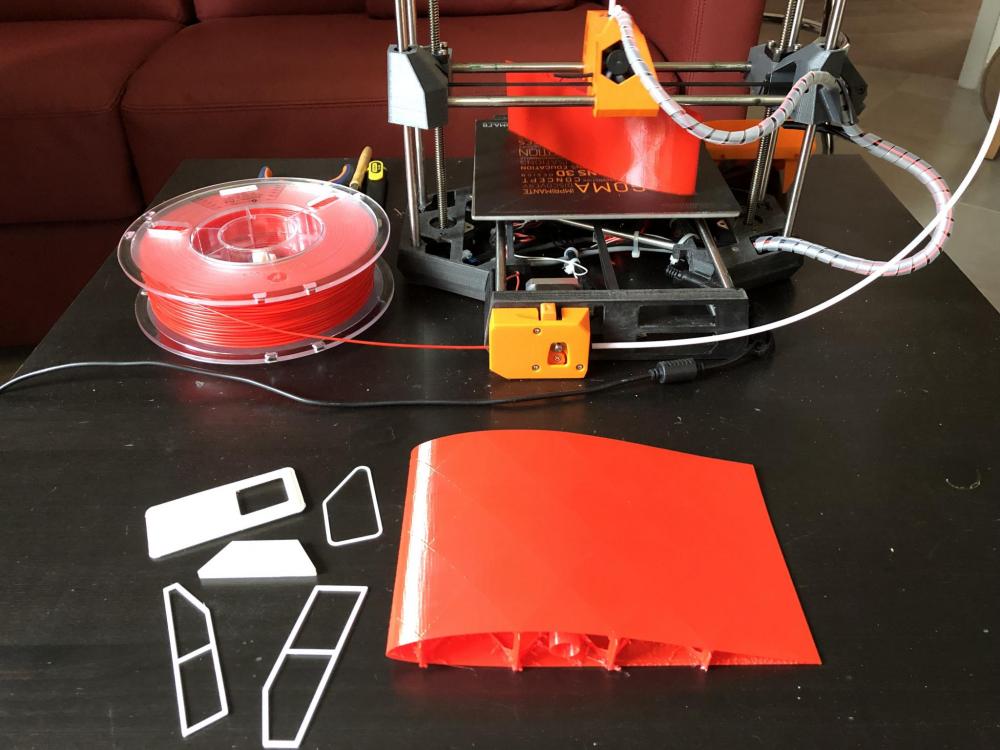 LeeOp Posté(e) Novembre 8, 2018 Posté(e) Novembre 8, 2018 Bonjour à tous. J'ai acquis dernièrement les fichiers d'un avion radiocommandé chez 3DLabPrint voici les premières impressions ; L'imprimante est une Discovery200 transformée en DiscoEasy200 avec ses 3 addons avec pour conséquence un gain énorme en précision et qualité d'impression. Les premiers essais ont été complètement ratés. Les parois et structures internes sont très fines (0.4mm), j'ai dû utilisé Cura avec un profil particulier proposé par 3DLabPrint et adapté pour la DiscoEasy : modification de la température, du flow, de l'épaisseur de couche, de la vitesse d'impression, arrêt de la ventilation pour améliorer l'accroche des couches, réglage fin de la rétraction pour éviter au maximum le "stringing" (petits filaments partout lors des déplacements) etc.. J'ai tenté de faire les réglages via le fichier XML de CuraByDagoma mais je suis finalement passé à Cura (quelques heures de galère !). Le résultat est très satisfaisant avec du PolyMax imprimé à 230°, il faut faire très attention au réglage de la 1ère couche. Plus qu'une trentaine d'heures d'impression…. Les pièces blanches sont des éléments d'un maquette de vedette de sauvetage en mer en cours de construction : La proue a été modélisée puis imprimée avec la DiscoVery (pas été simple non plus !). J'ai également réalisé pas mal de petites pièces imprimées : supports des 2 moteurs, entourages des fenêtres de la cabine, portes, etc... S'il y en a parmi vous qui sont intéressés par l'un quelquonque des sujets… Bonnes impressions à tous !