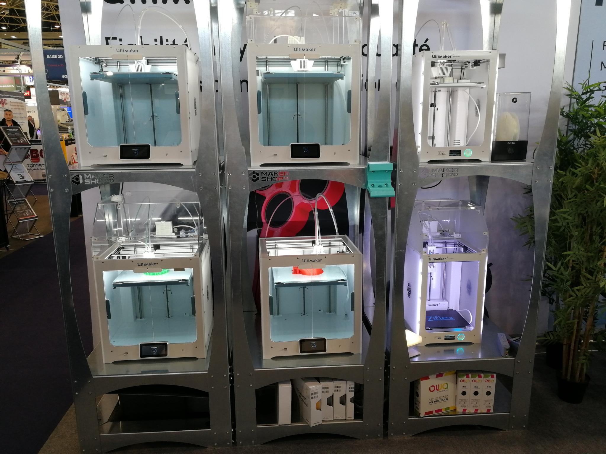 Jean-Claude Garnier Posté(e) Mars 5, 2019 Posté(e) Mars 5, 2019 (modifié) Hello Retour d'un après-midi au salon Global Industrie >>>>> Un belle participation de la "fabrication additive" sous toutes ses formes Les quelques Lyonnais qui traînent ici pourraient y voir jusqu'à Vendredi quelques belles imprimantes (hors de portée de leurs bourses) Mais aussi des machines de tout autres sortes. Plein les oeils. Quelques photos à suivre - une "ferme d'imprimantes" Ultimaker avec supervision connectée Imprimante Dynamic Tools 60 >>> Imprimante Big Rep One>>> (1mx1mx1m) Imprimante 3DP >>> Machine Sindoh >>> à deux têtes, une se gare à droite et l'autre à gauche Elles se partagent les mêmes guidages mais on voit bien deux courroies différentes Imprimante Volumic >>> beaucoup de pièces elles-mêmes imprimées Ici une petite machine proto avec de GROS guidages et de GROSSES vis à billes Modifié (le) Mars 5, 2019 par Jean-Claude Garnier 6