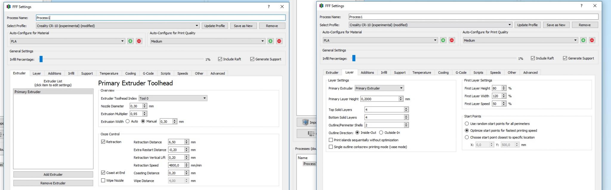 Alors, je ne pourrais pas te répondre pour Cura, car je ne connais pas ce soft.