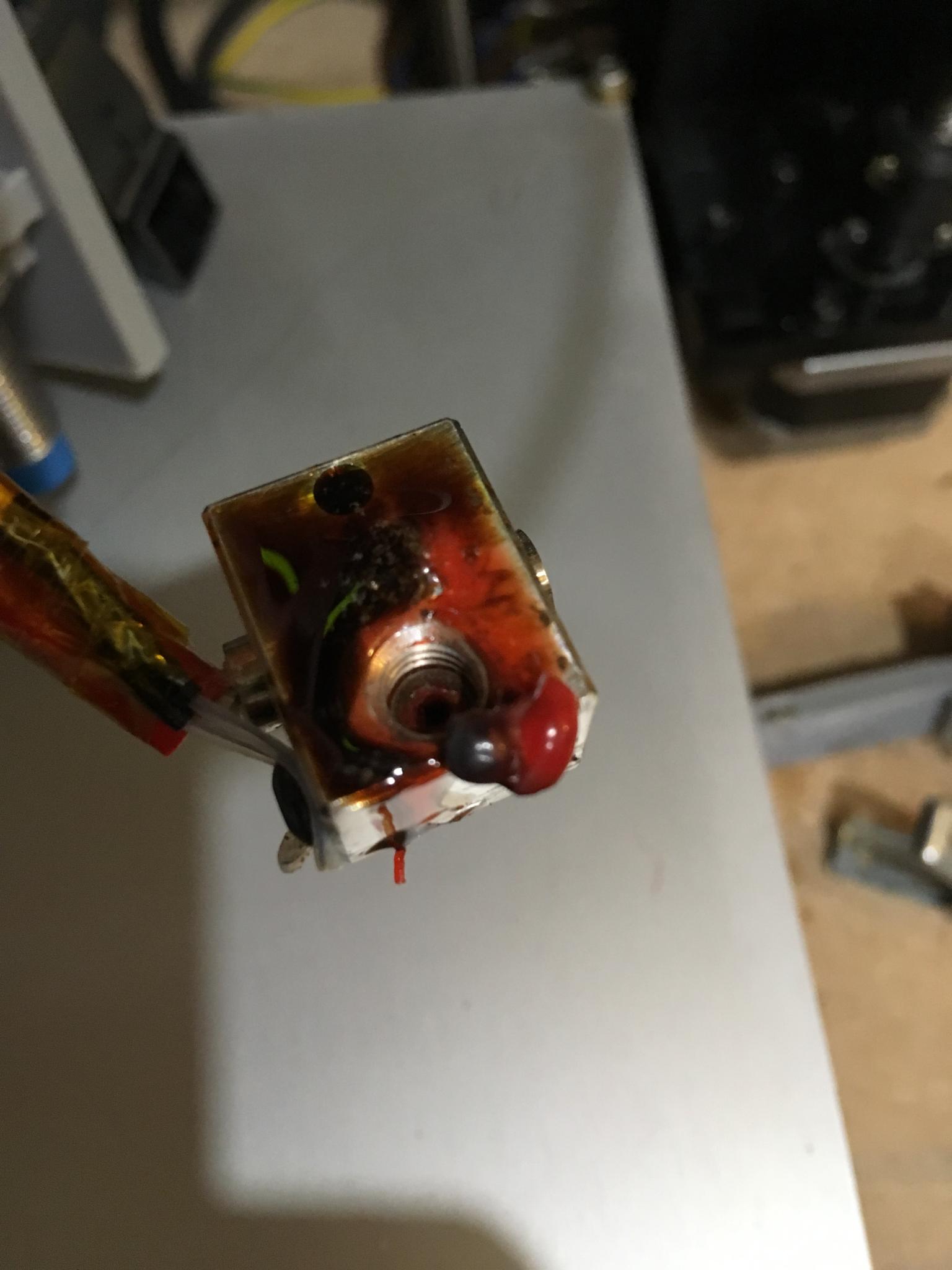 diiity Posté(e) Janvier 18, 2019 Posté(e) Janvier 18, 2019 Bonjour, C'est ma seconde impression où le fil a du brûler et noircir. J'ai cru que c'était une fuite au niveau de la buse et du corps de chauffe, mais je ne vois rien. Je chauffe mon PLA, rouge à 215° alors que le gris de la même marque(grossiste3D) je le chauffe à 205°. De plus les 2 impressions brûlées n'ont pas été faite l'une derrière l'autre. Qu'en pensez vous? diiity