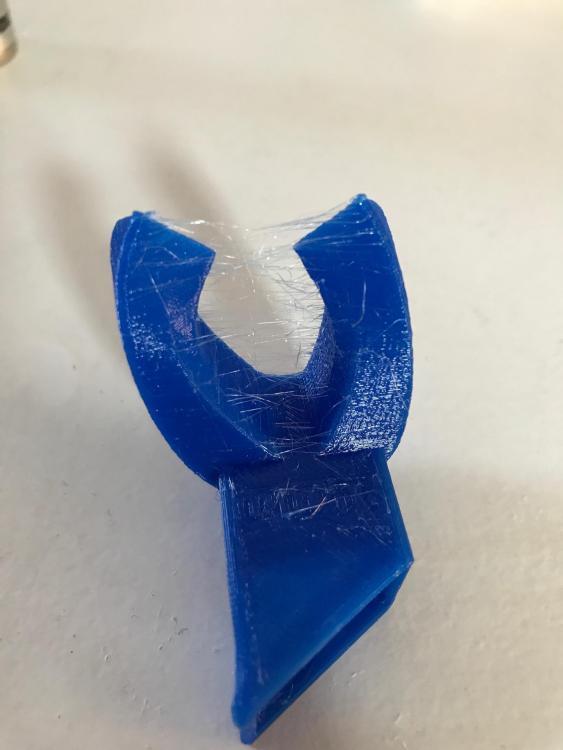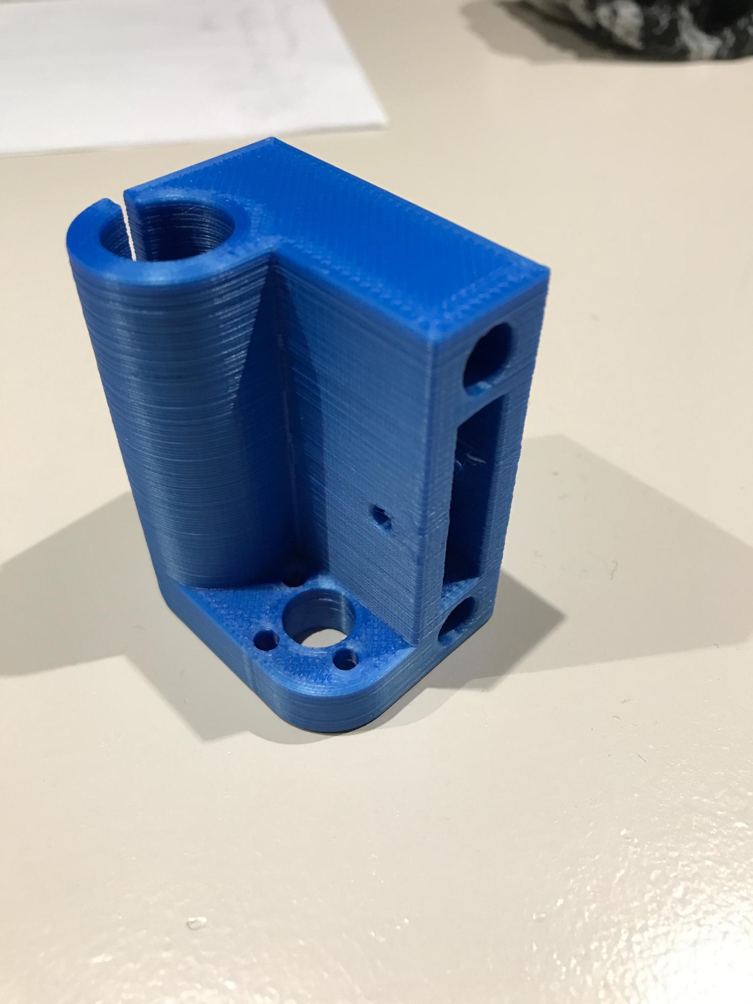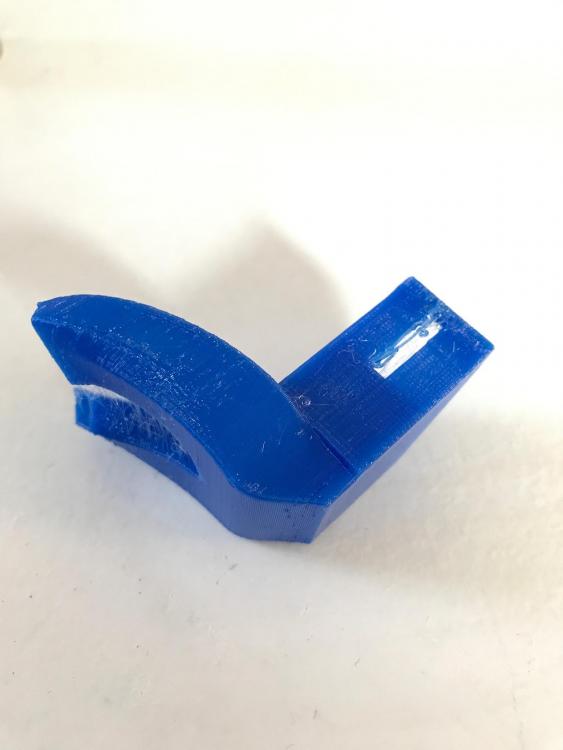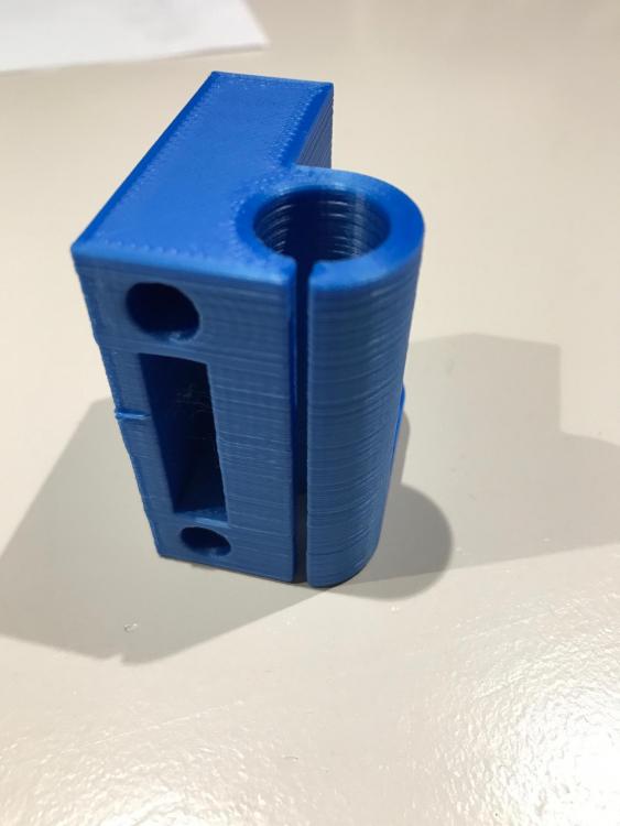 Nicojouan14 Posté(e) Mai 4, 2019 Auteur Posté(e) Mai 4, 2019 (modifié) bonjour à tous, Voici la pièce enfin imprimé Encore un petit défaut, heureusement je m'en suis aperçu à temps, la buse du fan duc venait "frotter" sur l'impression, obligé de stopper l'impression de repositionner le ventilateur et de relancer l'impression.....pfiouuuu ça passe mais un défaut esthétique....ca va ça aurait pu etre pire. Les cotes sont pas trop mal, les perçage pour mes tiges lisses font 8,06 sur l'axe X et 7,86 sur le Z. La pièce mesure 59,92 pour 60mm attendu (toujours sur l'axe Z), 46,02 pour 46 attendu sur Y et 34,97 pour 35mm attendu sur X, je trouve ça franchement pas mal du tout. Plus qu'à imprimer le tendeur de courroie qui va bien et je pourrai enfin régler au mieux mon soucis de tige lisse de mon chariot d'impression....ça avance pas trop mal pour le moment. Ensuite je peaufine mes calibrages X et Z ça va être plus facile avec des barres enfin parallèle et je lance l'impression pour passer en tete ED3V6 Mes paramètres d'impression: matière PLA, buse 195°C, bed 60°C, vitesse 30mm/s (périmètre et remplissage), couche 0,2, remplissage 30% Bilan 4H37min pour imprimer la pièce. Je trouve ça horriblement long, pensez que je puisse augmenter significativement les vitesses d'impression? 50 voir 60mm/s? Ou faut il attendre le passage a la tête ED3V6? Quand je vois certain print ou les gens annonce 100 à 120mm/s...pfiouu ça laisse rêveur. @+ Nico Modifié (le) Mai 4, 2019 par Nicojouan14