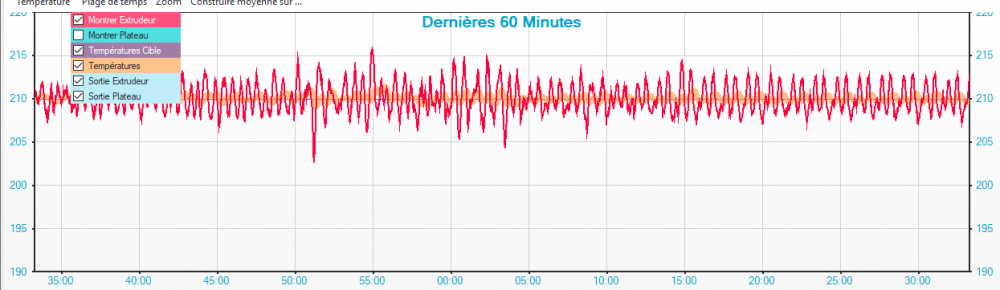 blue68 Posté(e) Mai 26, 2019 Auteur Posté(e) Mai 26, 2019 Bonjour, Changer la tension des courroies n'a pas résolu le problème. Je viens de remarquer pendant mon impression que la température de l'extrudeur a commencé a être instable au bout de 2 heures (cf PJ) Une idée sur l'origine du problème ?