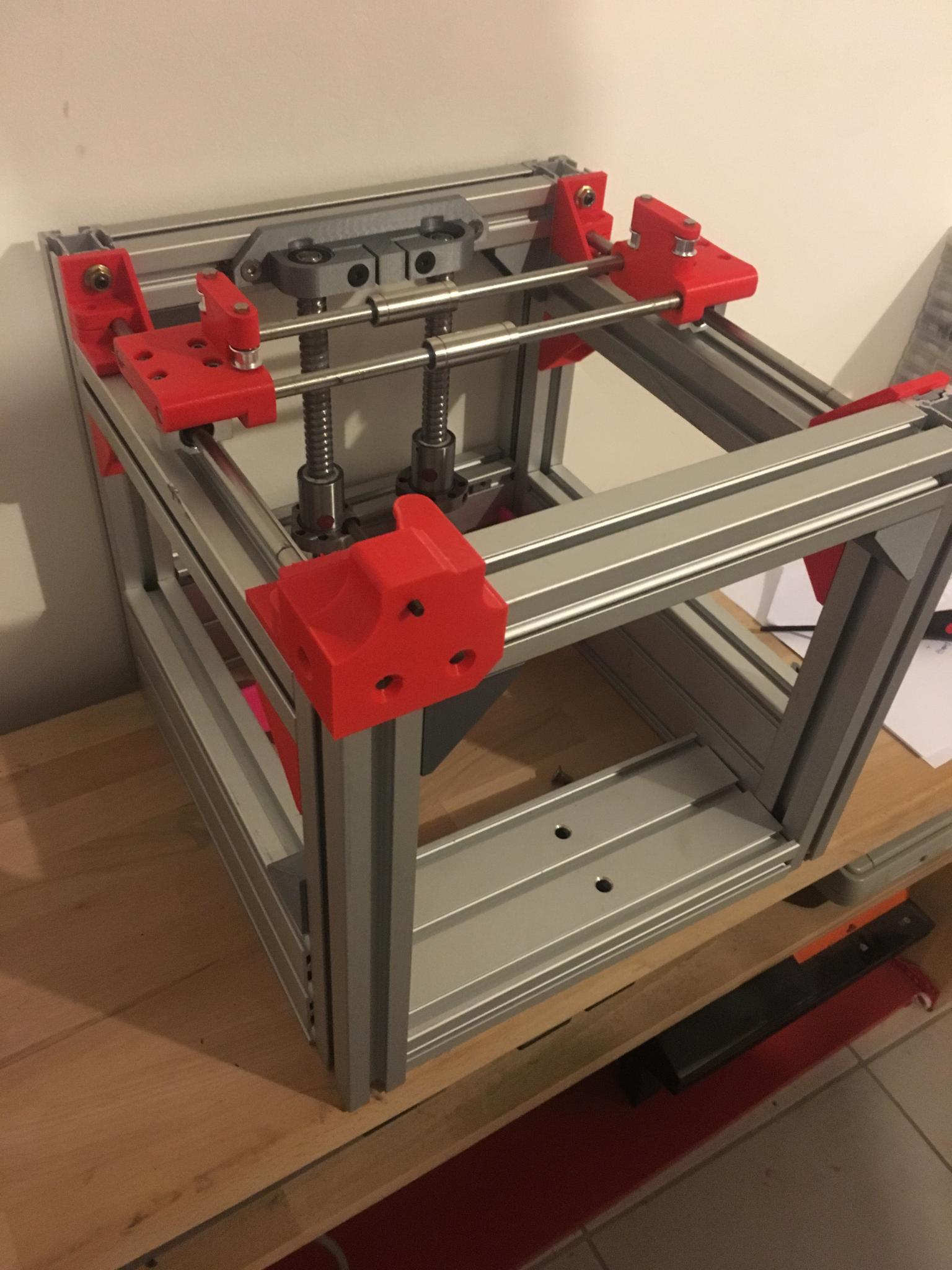 champx Posté(e) Juin 17, 2019 Posté(e) Juin 17, 2019 depuis un moment, je voulais faire ma propre imprimante 3d. du coup une fois le projet réfléchi, j'ai obtenu mon cahier des charges: -projet low-cost -machine laboratoire -précision et résolution -vitesse en gros, machine évolutive et interventions facilitées. je part d'un kit anet A8 thegoodcorner jamais monté -vis a billes pour le Z -core XY -chariot avec possibilité de monter plein de truc différents--> connecteur rapide -axes rectifiés -max de réglages possibles bref projet ambitieux! déjà modélisation de la bête: ensuite impression et assemblage des premiers éléments: