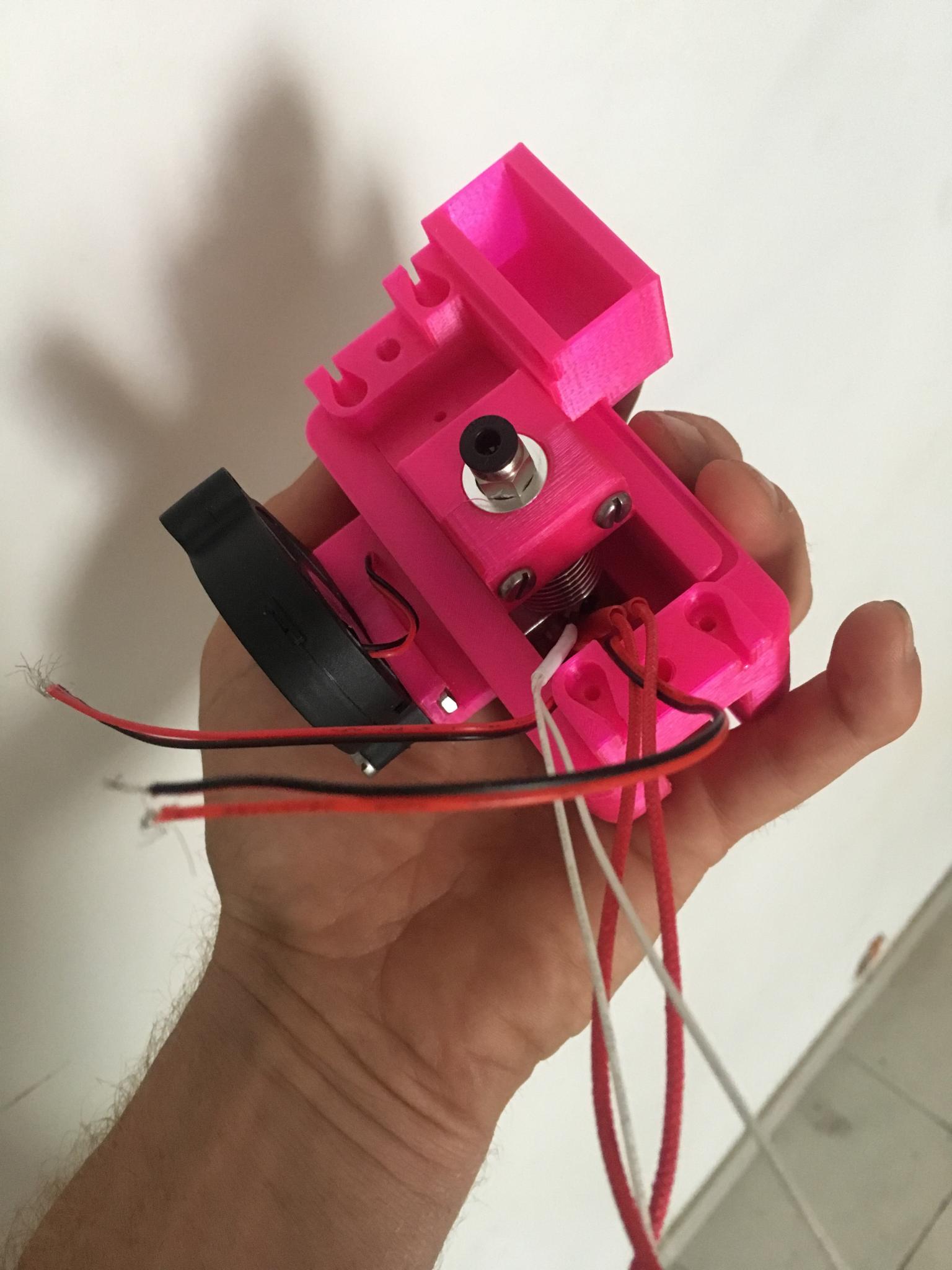 champx Posté(e) Juin 22, 2019 Auteur Posté(e) Juin 22, 2019 LE BOULET.... développer de A a Z un printeuse, des fois ça implique des erreurs.... j'avais des soucis de retract malgré le passage du heatbreak clone a l’alésoir (qui fonctionne bien sur l'E3D V6 que j'ai fabriqué sur mesure pour l'extrudeur mk8 de ma vielle bécane). en fait j'ai voulu aller trop vite en modélisant le refroidissement des ailettes de mon extrudeur, l'air passait trop loin autour! du coup je suis en train d'imprimer un nouveau verrouillage de E3D avec en plus une canalisation plus précise du flux d'air pour optimiser le refroidissement. je pense que ça va aller mieux après ça!