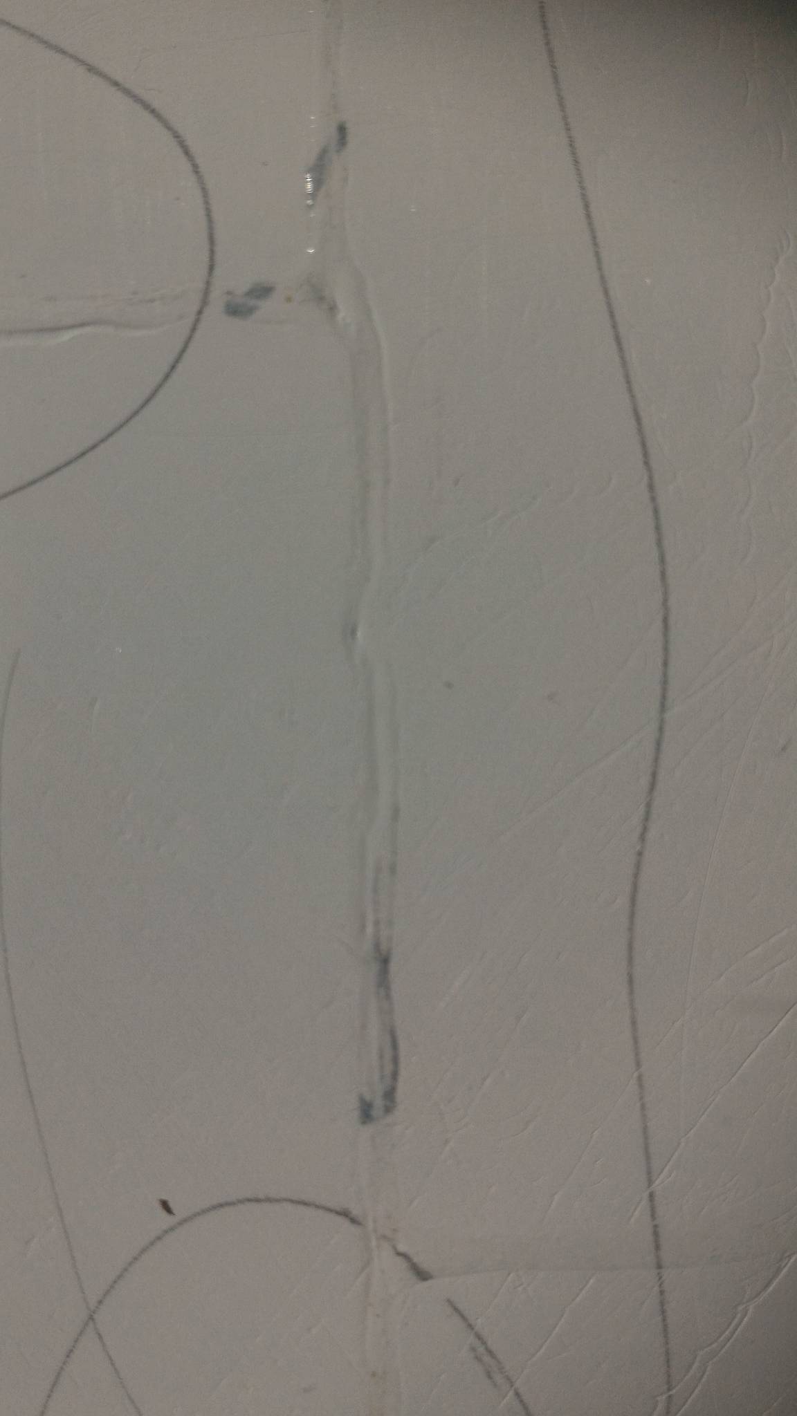 (en haut à gauches fissures et bulles d'air et à droite bulles d'air aussi / en bas à gauche fissures bouchées à la colle Revell et à droite fissure "normal")