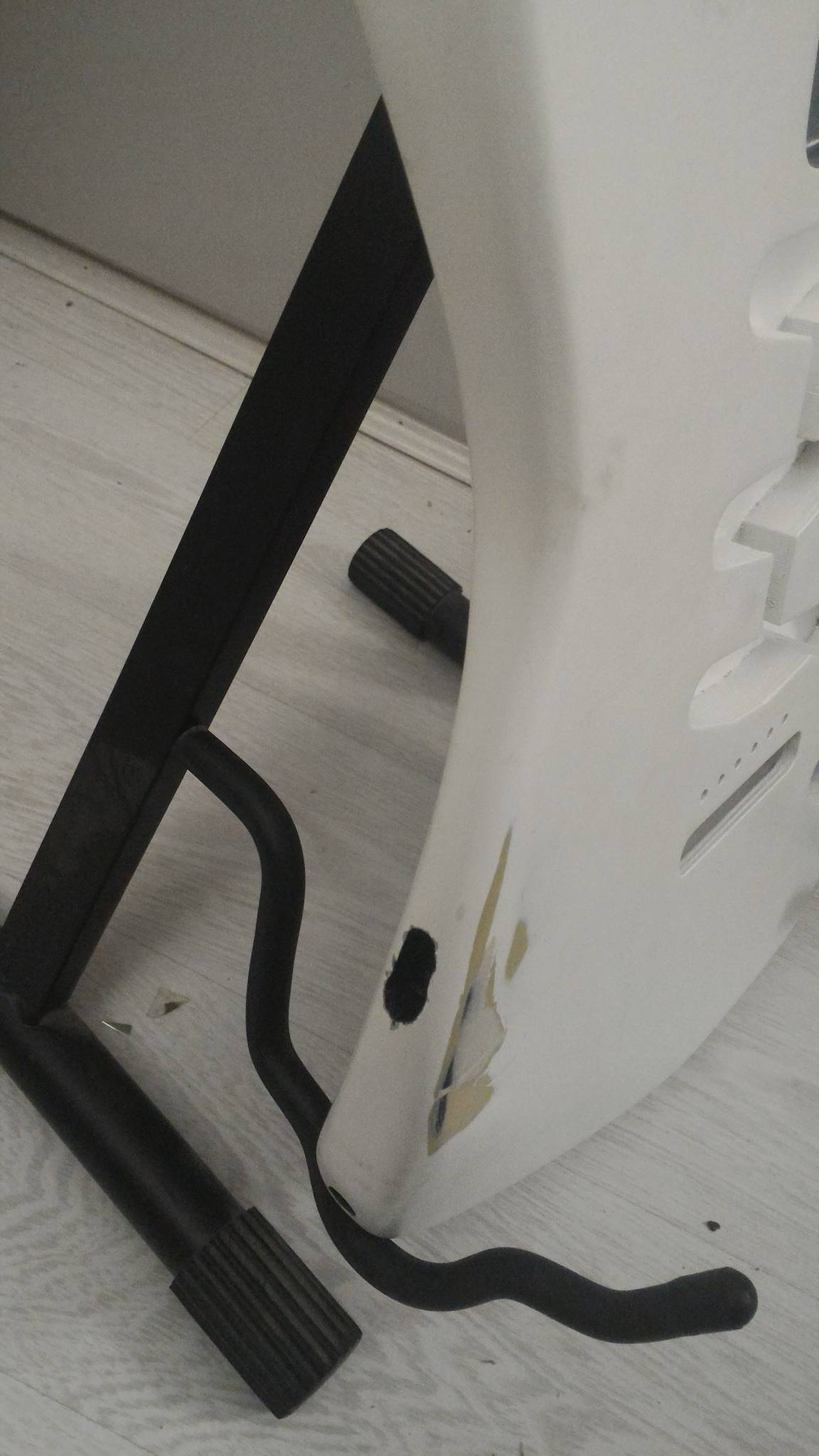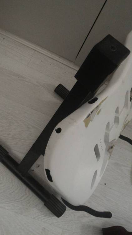 Le seul truc qui m'enbète c'est les 4 vis vissés dans la latte, les vis ne passent pas de la latte vers la guitare mais passent par la guitare pour arrivé dans la latte et donc ça appuit sur la peinture/mastic ce qui créer une sorte de rebord tout autour des vis... Vous avez une autre idée de l'attacher ? 🙂  (et désolé pour les multi-post, la limite est d'environ 4 photos par posts)