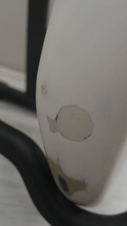 Mais j'ai déjà mis la peinture 😄 Le mastic en bombe (couche grise) jouait le rôle d'apprêt et par dessus j'ai mis plusieurs couches de peintures (couches blanches). Là où ça a mal réagit c'est car la peinture est à base d'acétone et que comme j'ai mis du mastice à l'acétone sur la peinture ça l'a fait fondre. D'ailleur je n'avait pas pensé (merci à toi) que je devrait par conséquent enlever le mastic à l'acétone avant de remettre de la peinture.