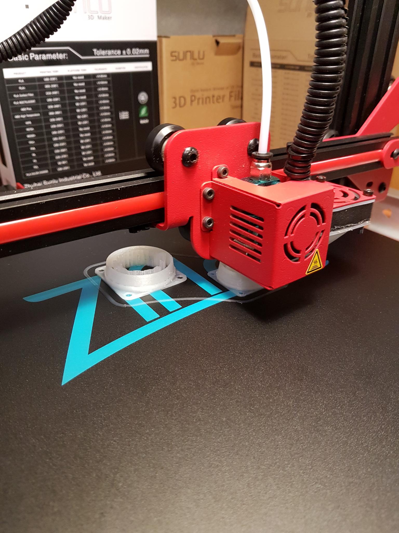 bayard78930 Posté(e) Octobre 25, 2019 Auteur Posté(e) Octobre 25, 2019 Bonjour, Le nouveau tapis est arrivé , une petite plaque de verre de 310x310x4 et le tour est joué. Çà a l'air de bien se passer, la buse à 210° et le bed à 0° enfin à température ambiante. Le PLA+ de chez SUNLU est content avec ça, on verra le résultat. Je suis entrain d'imprimer des silencieux pour les ventilateurs, pas spécialement sur du résultat mais on verra. Bon week-end à tous et toutes et A+