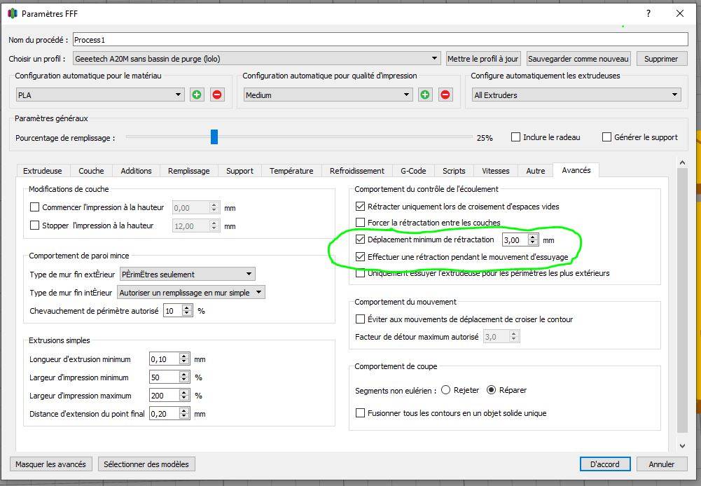 Gribouille28 Posté(e) Mars 28, 2020 Posté(e) Mars 28, 2020 Voici mes paramètres joints. Par la même occasion, je crois avoir résolu mes problèmes de stringing (enfin j'espère) car à écouter tous les personnes, ils m'indiquent que la température du hotend est trop haute. De ce fait je la baissait.... Mais que Neni! La température de la buse était trop basse, et de ce fait, la rétraction se fait mal car le filament est trop "visqueux" et l'extrudeur a du mal à "réaspirer" la matière. Du coup, j'ai augmenter à 210°, et miracle.... Plus un "cheveux d'ange". OUFFFFFFF.... Il faut vraiment en prendre et en laisser. Le principal, c'est d'être un peu logique et, surtout, CURIEUX. Merci à toi pour tous tes conseils (que je ne suis pas forcément), mais je suis preneur. Tester, tester et re-tester. Bonne soirée et à ta disposition pour toute information qui peut te rendre service. Bonne soirée et bon week-end pendant ce confinement qui commence à nous peser. Mes enfants me manquent. @+ Paul 1