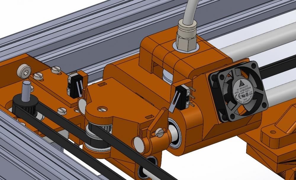 Donovan-88 Posté(e) Mai 22, 2016 Auteur Posté(e) Mai 22, 2016 Avancement du moment. J'ai reçu mes poulies et les SK10. J'ai décidé de repasser en Bowden pour le moment pour alléger la tête : Mais je me pose la question de où placer l'extrudeur afin d'avoir la gaine la plus courte possible et avec une belle courbe sans forcer sur le chariot. Sachant que j'ai rehaussé mes profilés afin de garder un caisson fermé. @J-Max.fr, toi qui as une Core XY en Bowden, ou as-tu placé l'extrudeur? Sinon j'ai placé les Endstop réglables en X et Y : Et j'ai décidé de changer mes LM8UU et LM10UU par des bagues bronze pour le poids, le bruit et l'entretien. J'ai trouvé ceux-ci : Bagues de 8mm et Bagues de 10mm La qualité est bonne ? ou vaux mieux en prendre des comme ça ?: