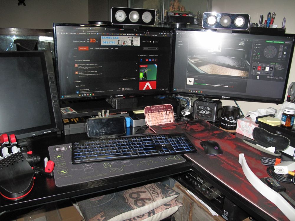 Ironblue Posté(e) Mars 4, 2024 Auteur Posté(e) Mars 4, 2024 @divers pour éviter le HS dans le sujet BambuLab Je pourrais effectivement mettre l'AMS au mur soit en 1 ou en 2 (le 2 serait plus pratique) mais j'ai pas envie de percer le mur surtout que je change assez souvent ma config "bureau" donc avec des trucs accrocher au mur c'est moins évident de changer. Je pourrait aussi enlever le "bordel" sous le 2 et poser l'AMS sur une étagère posé sur le bureau.