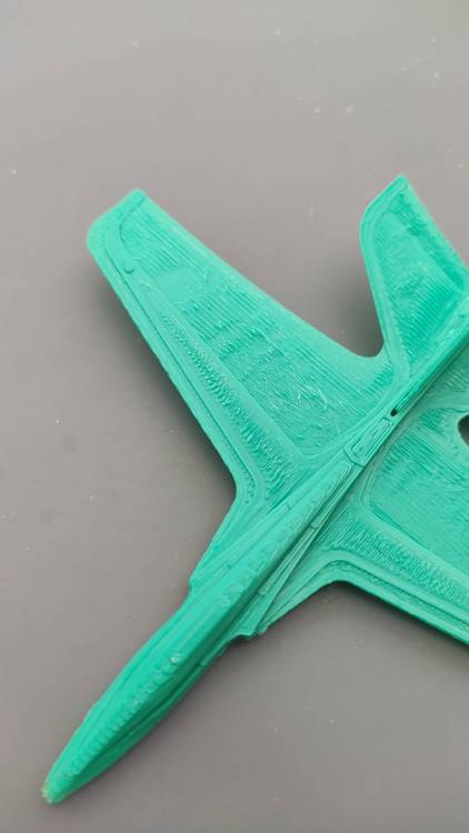 CyprienS Posté(e) Juillet 3, 2020 Posté(e) Juillet 3, 2020 Salut tout le monde, j'implore votre aide ! Lors de l'impression des surfaces inférieure ou supérieure, des défauts apparaissent et je ne sais pas quelle est leur cause. Je ne comprend pas non plus pourquoi les murs et les contours sont nickel, en tout cas, très acceptables. le problème apparaît uniquement sur les surfaces, mais comme on peut facilement le distinguer sur la surface supérieure de l'aile, à certains endroits la surface est bien plane. Je possède mon imprimante depuis la fin de confinement et tout se passait bien, j'avais commencé à peaufiner mes paramètres d'impression, et petit à petit le problème est apparu. J'ai donc décider de revenir au profil standard de Cura pour ma dernière impression (l'avion en photo), mais je n'ai constater aucun changement. Merci d'avance pour vos pistes