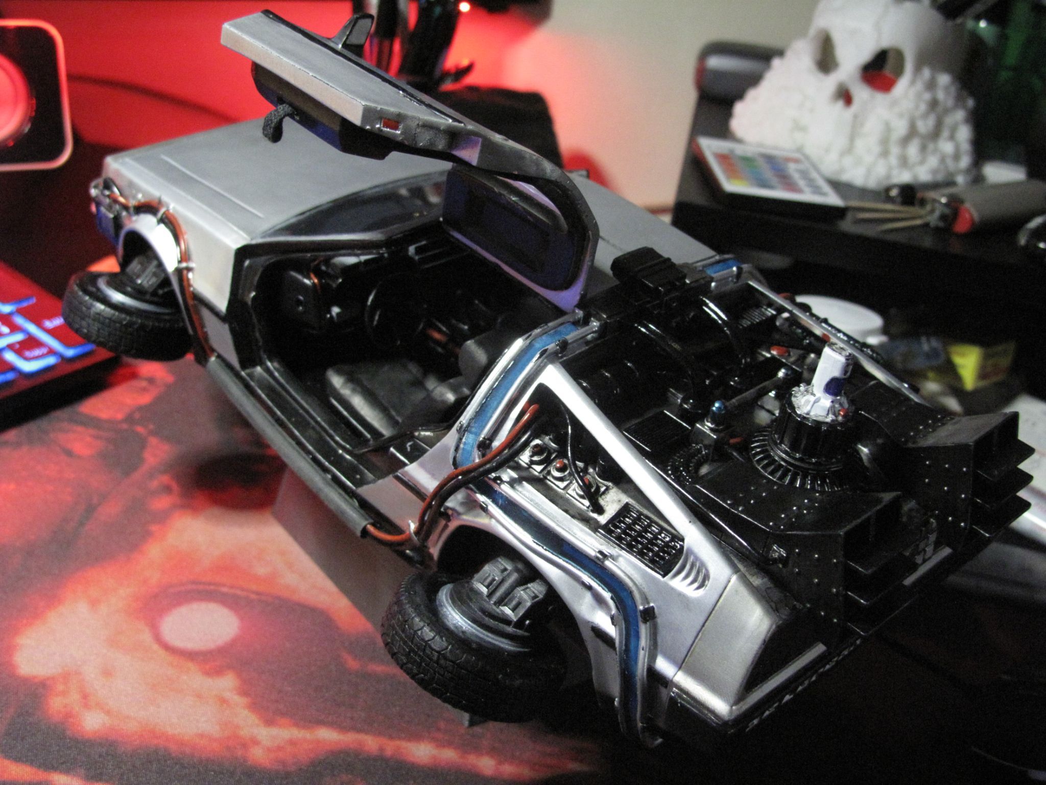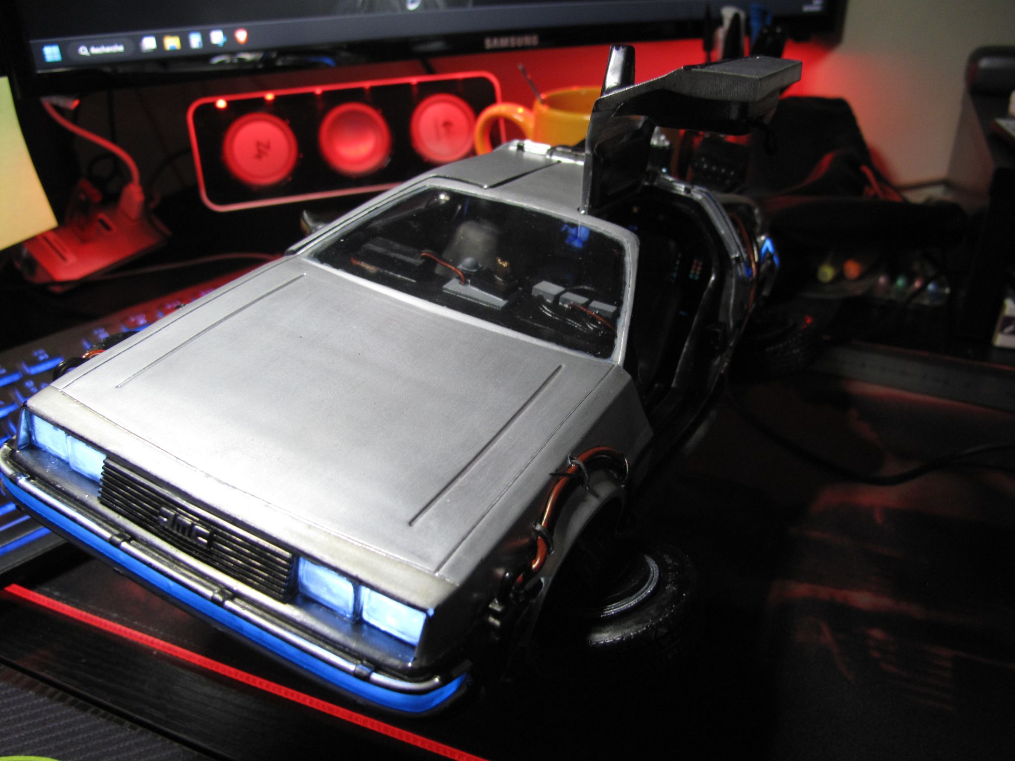 Ironblue Posté(e) Octobre 16, 2023 Auteur Posté(e) Octobre 16, 2023 J'avais imprimée il y a pas mal de temps une Delorean, je l'ai enfin finie. Quelques petites galères d'ajustement, fabrication des vitres et du pare brise, compteur qui s'éclaire et très chiant à peintre pour que sa ressemble à un compteur... C'est pas parfait mais je suis quant même contente du résultat. 14