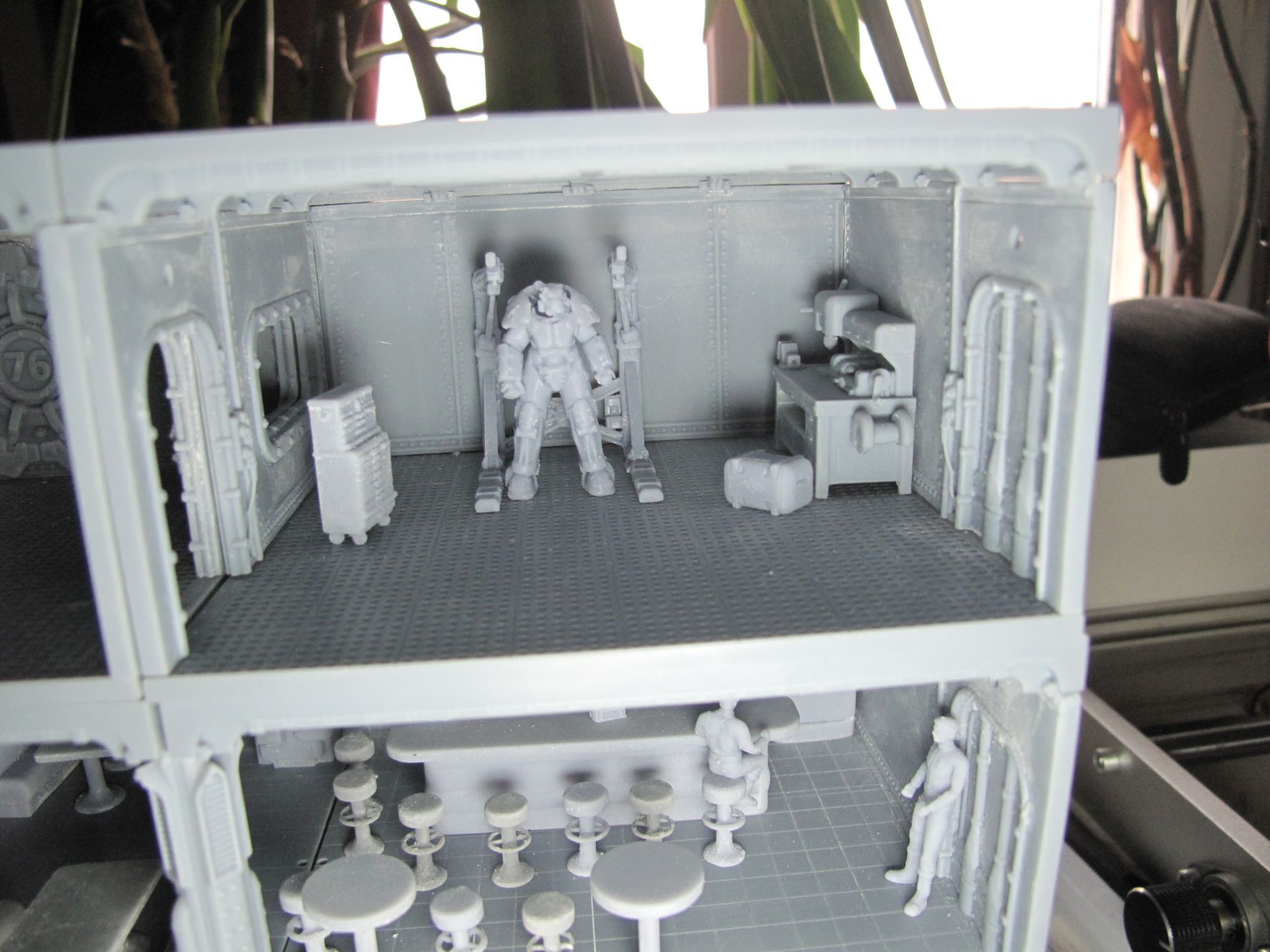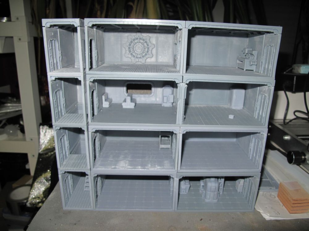 Les murs des boites sont finis, reste des escaliers et le mobilier puis une partie de la station red rocket qui va aller sur le bunker après je commence la peinture....