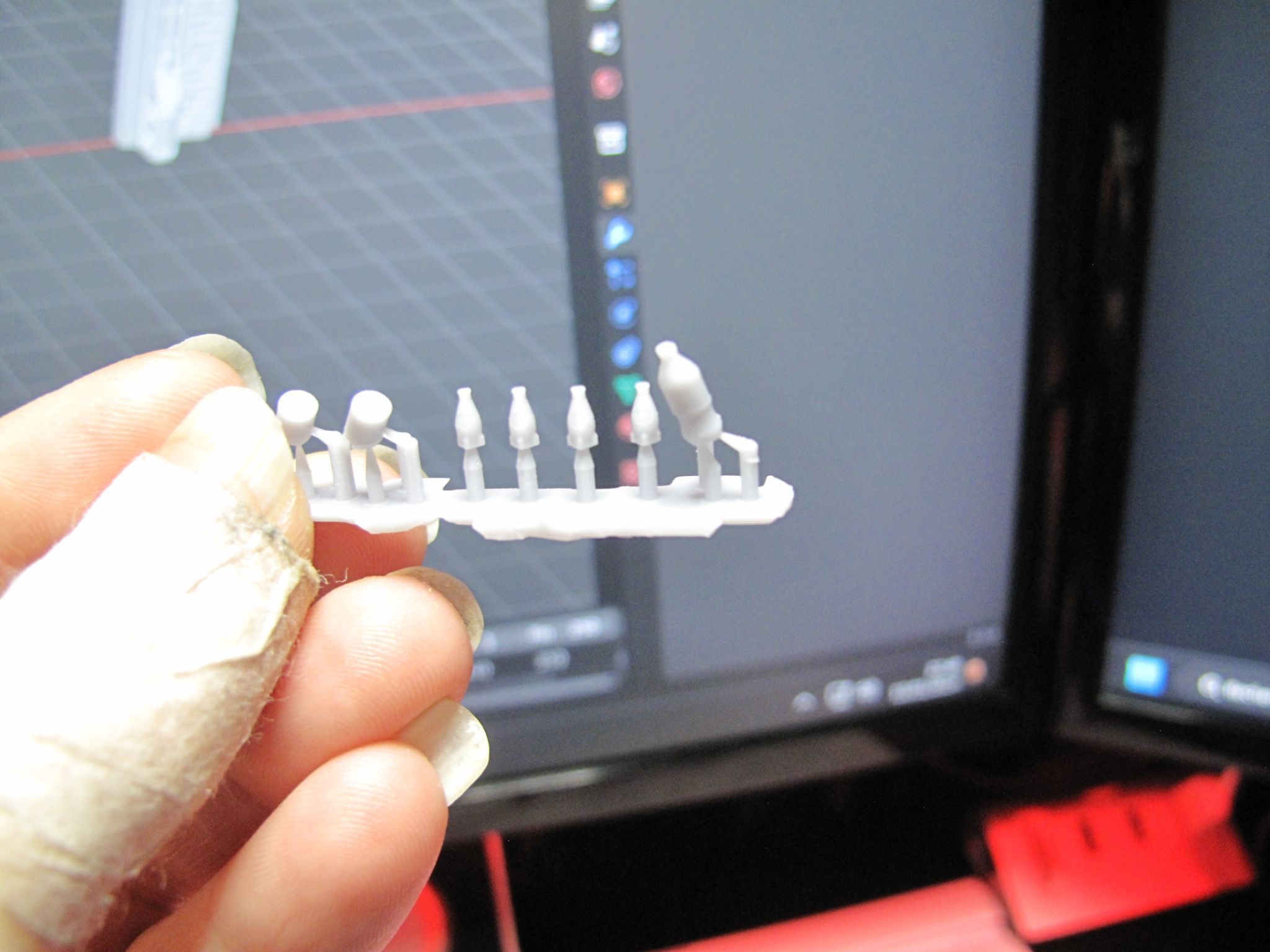essais d'impression, quelque souci (surtout sur le lit) surement du à l'orientation et au support et mon bac était pratiquement vide, j'avais besoin de 47.4gr pour l'impression et il me restait 51gr dedans, c'est passée, je vais pouvoir faire les essais avec la résine conjure sans avoir un gros reste de résine creality.