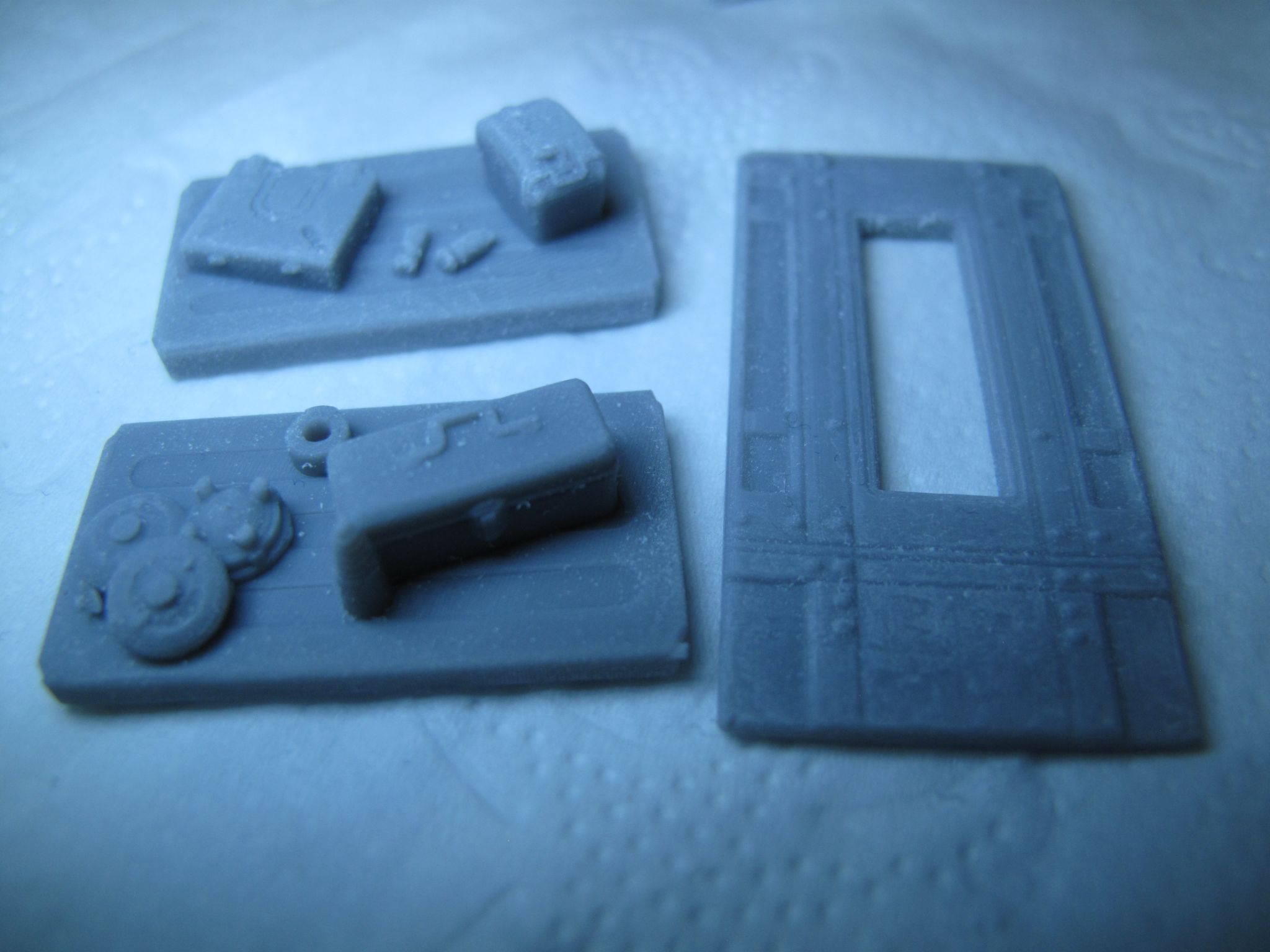 les essais d'impressions continue, pour l'instant ça va, la résine creality à tendance à se courber un peu mais rien de méchant plus qu'a attendre la livraison de résine pour reprendre les impressions. J'ai le pilier centrale de la grande pièce à imprimer et 3 boites après je pourrais passer aux accessoires.