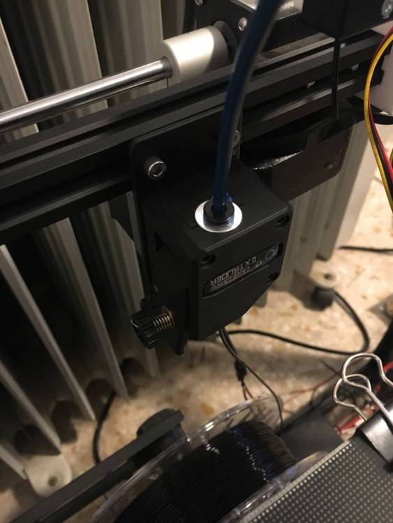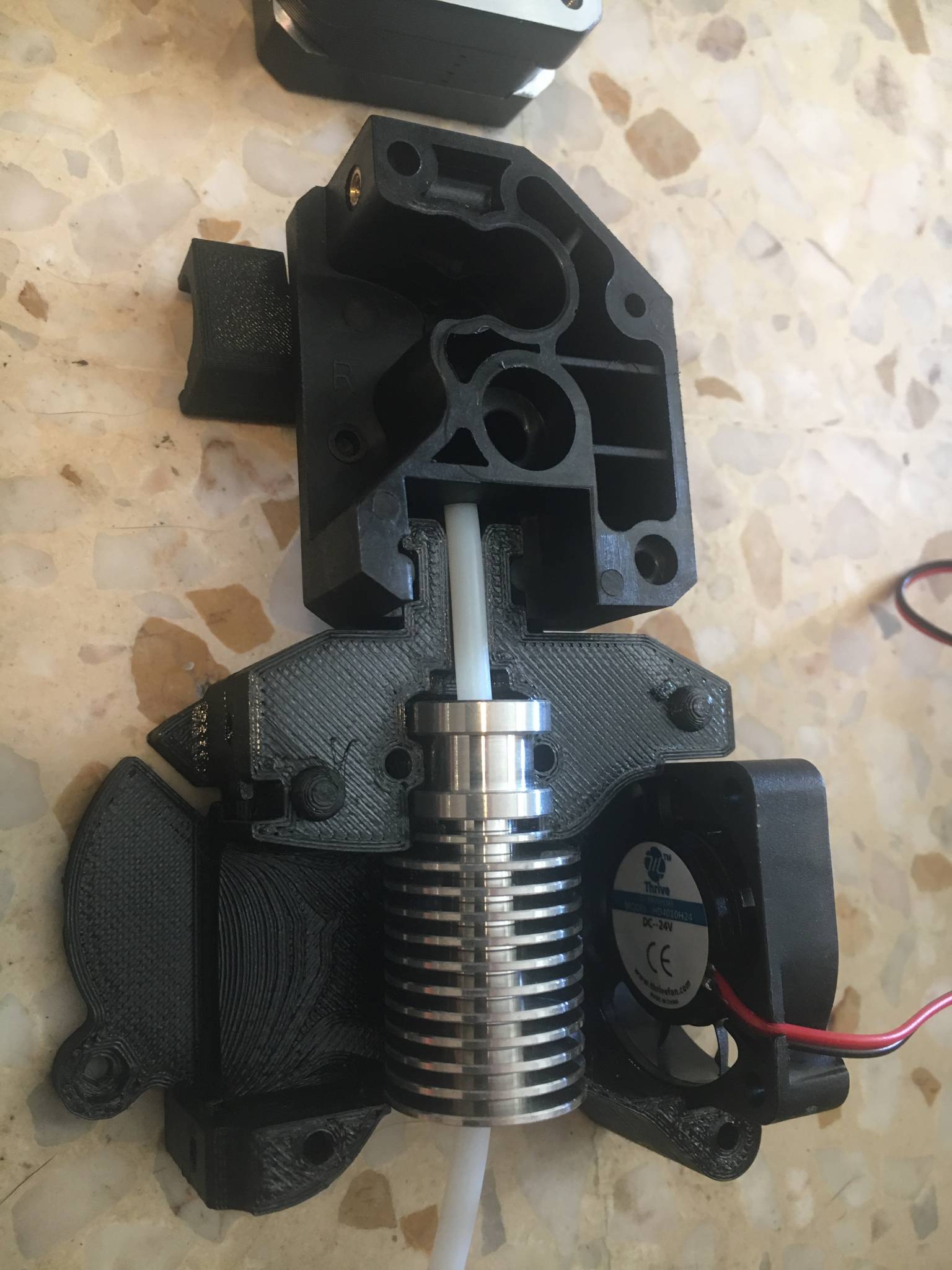 Grap Posté(e) Aout 1, 2020 Posté(e) Aout 1, 2020 Bonjour Je vais commencer un upgrade de mon Ender 5 + afin d améliorer un peu la situation. Ca va me faire la main et apprendre beaucoup de choses dans la foulée. Je trouve cette imprimante bien ( c est ma première aussi ) mais certains problèmes sont apparus et je souhaiterai les éliminer. Après le premier mois, j ai commandé et changé l extrudeur plastique contre un clone BMG + tube capricorne et du coup plus de claquements. En revanche, le feeder qui relie le tube a l extrudeur me pose problème car le tube a du jeu après quelques jours de fonctionnement. Pour tester, j ai imprimer un feeder avec un implant de M6 afin de visser un emboue ptfe. Je sais pas si ca va tenir longtemps ..... Le moteur pas a pas horizontal des Y a 2 axes est bouillant. J ai pas vérifié la tension mais en attendant, j ai rajouté un ventilateur dessous que j avais en stock. Le bruit des moteurs est infernal et en attendant une nouvelle carte mère, j imprime des maillons de chaine ...... Je lie les modes d emploie pour installer marlin 2.0 et autre firmware ... pour une SKR pro V1.1qui m a l aire bien sympa. j aurai surement plein de questions a poser 1