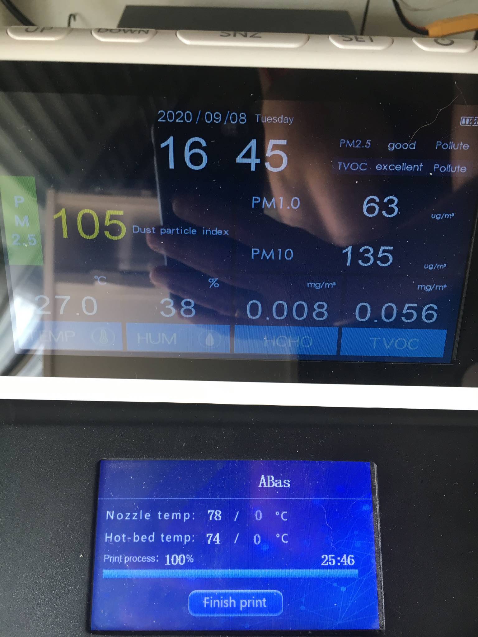 Grap Posté(e) Septembre 8, 2020 Auteur Posté(e) Septembre 8, 2020 Après 1 jour d impression sur une véranda fermée de 8m2 de surface, je peux voir une petite pollution aux particules fines pour ce PETG a 245 C. Donc c est pas si bon de dormir a coté de son imprimante