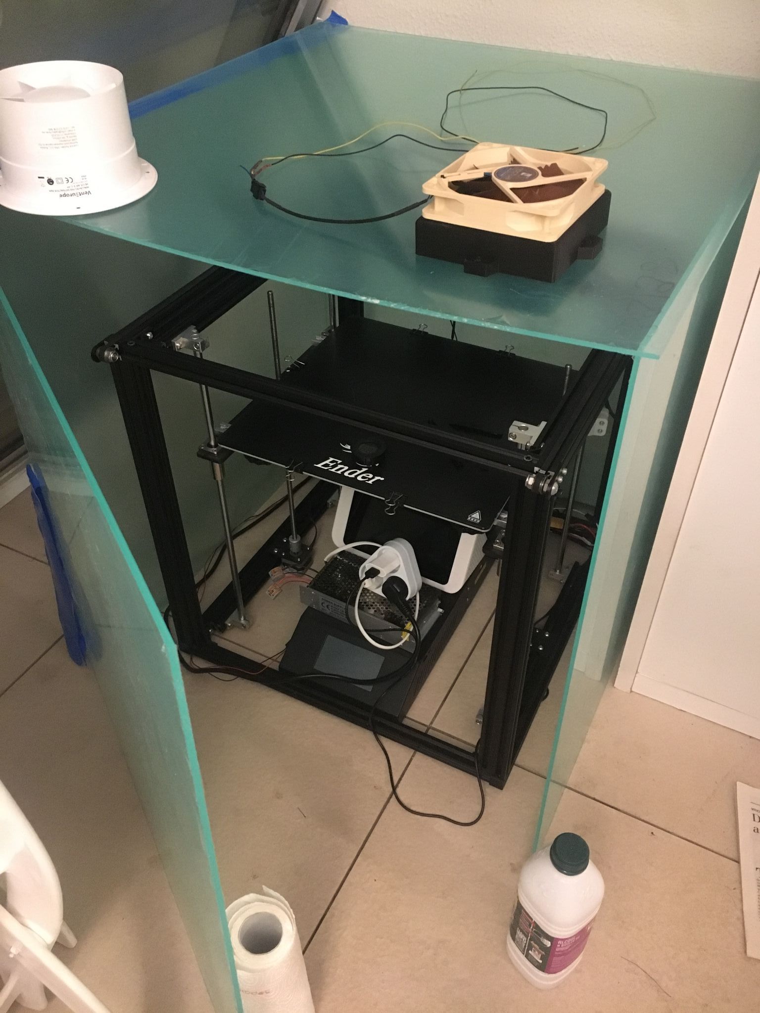 Bosco2509 Posté(e) Aout 2, 2020 Posté(e) Aout 2, 2020 (modifié) Il y a 11 heures, Grap a dit : Pour le boitier , comme je suis un gros feignant , je vais faire un cube avec une glissière en haut et devant afin d atteindre l imprimante. Elle est posée dans un coin et je ne peux pas mettre de portes devant ou dessus. C'est pas d'être feignant là... vu le boulot que cela représente. Le feignant, lui, prendrait du carton... en glisserait dans les profilés... et terminé ! (Oui ! J'ai vu le cas pour une Ender 5 Plus sur Facebook... et c'est très moche ) Il y a 11 heures, Grap a dit : j imagine qu il faut aussi déporter l électronique dehors ou au moins isoler et faire respirer le bloc électronique sur un coté. Oui... et non à la fois. Oui, car c'est recommandé, si il n'y a pas d'aération pour laisser respirer l'électronique ou pour laisser s'échapper l'air chaud qui s'y accumulera. Non... ce n'est pas utile de déporté l'électronique (en plus cela demande d'allonger tout les câbles et c'est du boulot qui doit être fait soigneusement), car si tu permet à l'électronique de pouvoir aspirer de l'air de l'extérieur, ce n'est pas nécessaire. C'est pour cela que perso, j'ai préféré utilisé le cadre de l'imprimante, vu que l'imprimante repose sur 4 pieds, ces derniers sur-élève légèrement l'imprimante, qui permet d'aspirer l'air frais par dessous... et les "ouies d’échappements", elles laissent s'échapper un peu du surplus d'air chaud. Par expérience, de l'époque de ma CR-10, j'ai retenu la leçon suivante : Il ne faut pas fermer hermétiquement l'imprimante, c'est contre productif. Il faut que de l'air frais de l'extérieur puisse un peu rentrer ne serait-ce que pour l'électronique. Un drivers moteurs ou un Mofset qui surchauffe... bonjour les dégâts et les pannes. Et il faut que l'air chaud de l'impression en cours puisse s'échapper un peu... sinon cela s'accumule... et c'est là aussi le début des ennuis, car il faut alors refroidir encore d'avantage autant l'impression en cours que la Hotend. Et on se retrouve alors à installer une ventilation sur le caisson... et un gros conduit pour évacuer l'air chaud. Crois-en mon expérience. Un caisson c'est bien pour le bruit... mais c'est quand on a pas goûté aux joies des drivers TMC2208. Mais pour l'air chaud, un caisson... c'est plus problématique. Modifié (le) Aout 2, 2020 par Bosco2509