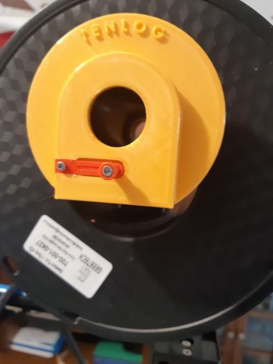 vap38 Posté(e) Septembre 27, 2020 Auteur Posté(e) Septembre 27, 2020 Voici le montage final est facile à installer, le verrou rouge est un ergot qui est une sécurité d'ablocage complémentaire; ainsi il est impossible d'enlever la sécurité autrement que par l'utilisateur. J'ai fait des tests et le dispositif garantie bien son rôle de sécurise. il m'est arrivé qu'une bobine chute suite à des spires coincées dans la bobine et çà fait des dégâts impacts sur le bois sans casse de l'imprimante heureusement. je conseille d'être vigilant car la bobine à l'origine n'est pas sécurisée; hélas les anciens système étaient plus efficaces avec un noyau et un écrou d'ablocage 1