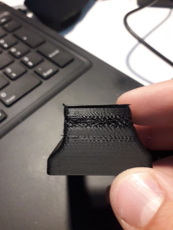 skarab2201 Posté(e) Octobre 7, 2020 Auteur Posté(e) Octobre 7, 2020 il y a 16 minutes, Krl a dit : Ca vient peut être de la baisse de température ambiante de ta pièce (vu qu'on est passé de 30 à 10° en 2 semaines..) Si j'avais eu cela sur toute la pièce, pourquoi pas, mais là je n'ai ça que sur quelques couches. Voici ce que ça a donné sur mon dernier essais : On voit que les toutes première couches sont bonnes et et qu'il y a une dizaine de couches intermédiaires. Je me demande si ce ne serai pas un probrlème de refroidissement. J'ai l'impression que j'ai moins de problèmes quand l'imprimante est ouverte que quand elle est fermée. Pour info, la température de la pièce est très stable. Climatisé en permanence, la température est comprise entre 22.5 et 24.5.