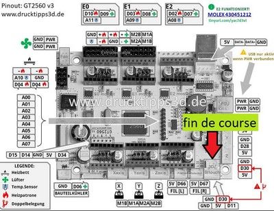 Casque_man Posté(e) Novembre 6, 2020 Auteur Posté(e) Novembre 6, 2020 (modifié) justement le zmin est déja sur le pin en haut à droite (voir D30) le cablage du bltouch des 5 pins est comme sur la photo Modifié (le) Novembre 6, 2020 par Casque_man