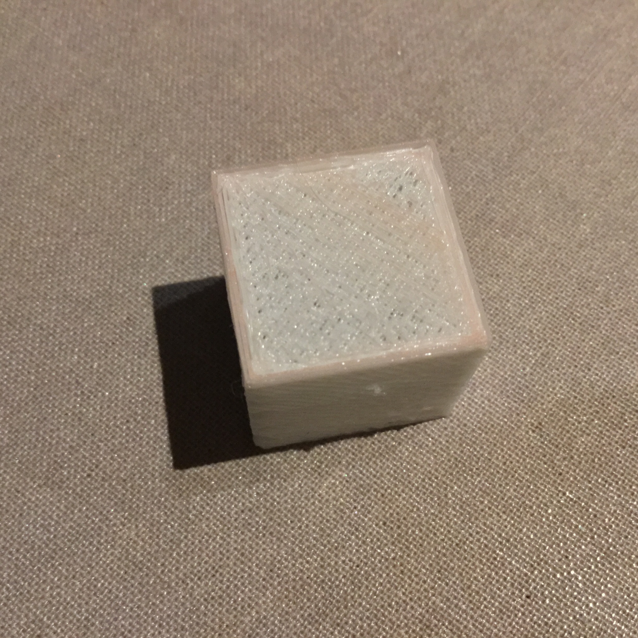 Yaegger Posté(e) Novembre 8, 2020 Auteur Posté(e) Novembre 8, 2020 Re. ci joint les photos de ma 1er impression . les côtes mesurées sur arrête vont de 19,45 à 19,77 mm pour 20 mm de cote nominale cela est il acceptable ou je peux améliorer la chose ? Esthétiquement je suis pas super satisfait,si les lettres sont plutôt bien « dessinées « le remplissage des surfaces du cube n’est pas bon,de même les arrêtés sont bien verticales,mais irrégulières. De plus le cube est fragile je le sent « souple « sous mes doigts N’ayant pas une super maîtrise de Cura j’imagine qu’il faut revoir certains paramètres. voici les paramètres basiques utilisés : hauteur de couches 0,2 epaisseur parois 0.8 (je pense que la il y’a une connerie ) nbr lignes parois 3 epaisseur dessus et dessous 0,8 couches inférieures et supérieures 4 expansion horizontale 0 (ça me cause pas ça) densité remplissage 20% motif remplissage giroïde (ça avait l’air sympa). T° plateau 60° T° buse 220° Vitesse d’impression 50mm/s rétractation activée J’attends vos remarques. par avance merci.