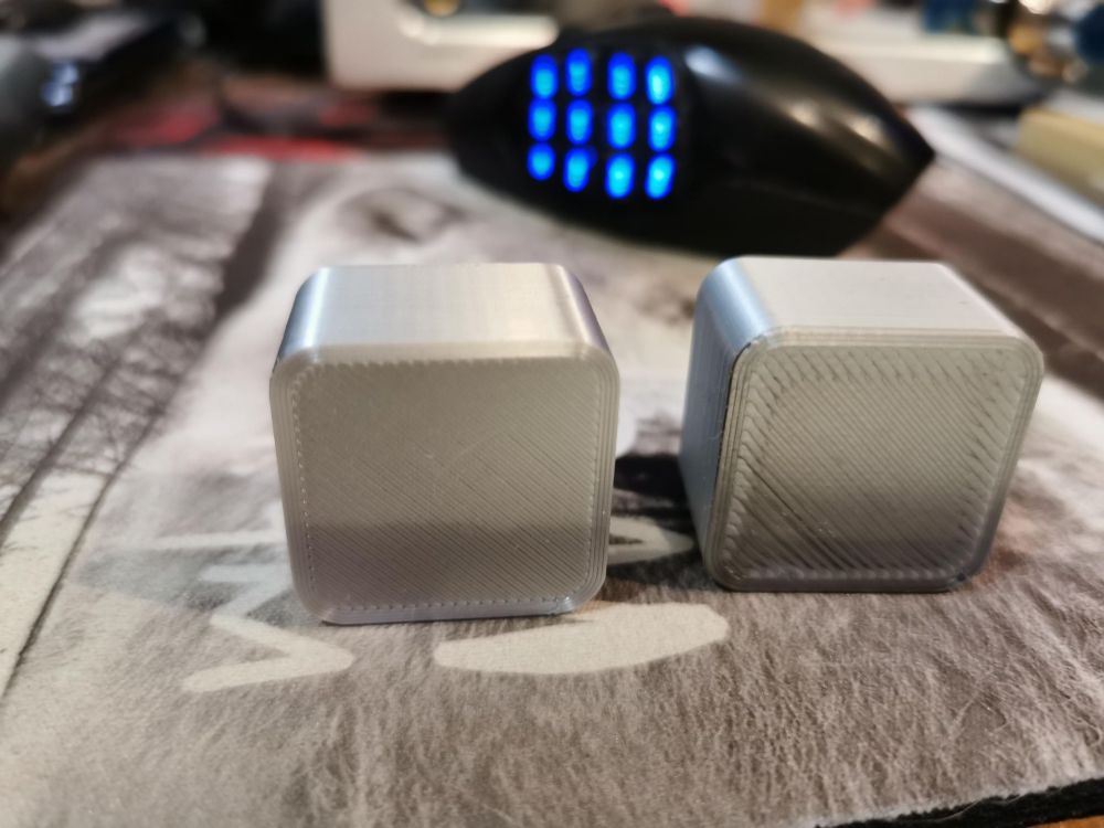 MrMagounet Posté(e) Décembre 13, 2020 Posté(e) Décembre 13, 2020 @Doc2b Voici les miens ton cube avec le G-Code du cube fournit sur la cle est très bien vue le slice fournit, regarde a droit celui avec le Gcode d'origine et a gauche le modèle slice sous cura avec lissage activé (sous prusa j'ai un très beau résultat mais sans lissage il n'y a pas semble t'il). Tu peux voir qu'il y a des anomalie sur le cube avec le Gcode officiel c'est lié a leur slice. essai avec Cura les profile install dans cura fonctionne bien, sous prusa je suis parti d'un profil j'ai entièrement revue par la suite car plein d'ineptie pour moi. @M1K3D0 dit moi y a pas moyen sous cura d'évite les Z scare sous prusa pas de soucis mais sur cura rien y fait. et je te confirme cela matifie les filaments silk le lissage.