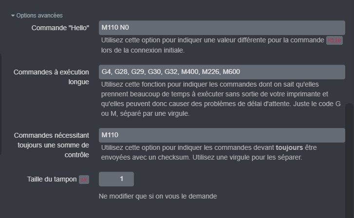 fran6p Posté(e) Février 21, 2021 Posté(e) Février 21, 2021 @Christian67 Dans Octoprint, clic sur la «clé» pour ouvrir la fenêtre des paramètres d'Octoprint. Imprimante / Connexion série, onglet «firmware et protocole», section «réglage fin du protocole», option avancée, ajoute les commandes Gcode qui prennent du temps dans la liste «commandes à exécution longue». Voici ma liste :