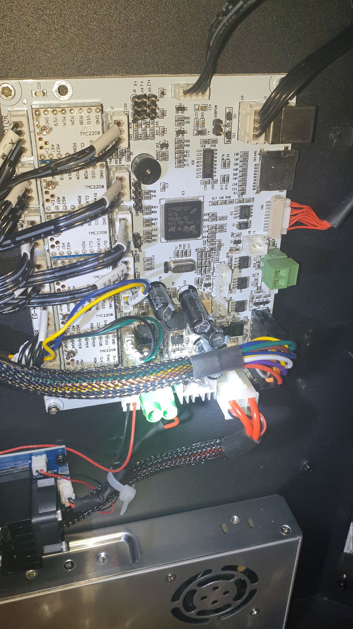lolover Posté(e) Janvier 16, 2021 Posté(e) Janvier 16, 2021 Bonjour a tous et a toutes. Je viens sur ce forum pour éclairer mes lanternes et je remercie tous ceux qui pourrons apporter des réponses à mes questions. J ai acheté récemment une imprimante geeetech a30m sur le site aliexpress. Après réception et un montage que je pense être correct (je dis je pense parce que j ai scrupuleusement suivi les instructions fournis par le constructeur mais nous ne sommes pas à l abris d erreur), et une vérification de la commutation sur le bon voltage,j ai allumé l imprimante. Du dessous de la base de celle ci est sortit de la fumée. Je me suis empressé d arracher la prise pour limiter la casse. J ai donc recontacté le vendeur, en lui expliquant le problème. Dans l attente de sa réponse (que j espère favorable à une négociation avant litige paypal),j ai démonté le capot sous la base pour mettre en évidence le problème (je suis de formation electrotechnicien). Alors de visu à prime abord, l alimentation n as pas souffert. Par contre sur la carte mère quelques composants ont pris plus que chaud. Je vais me rapprocher d un détaillant électronique pour acheter ces pièces et les remplacer en attendant un remplacement gracieux de la carte mère de la part du vendeur Mes questions sont celles ci : -n ayant pas pu identifier les composants ainsi que leur valeurs pourriez vous m aider ?(je n ai jamais rencontré ces composant durant ma formation ). -si je remplace les composant abîmé visuellement cela suffit il ou dois je tester d autre composant pour être sur? -cette panne est elle du a une étourderie de ma part ou est ce plus un problème de série? -si je change tous les composant abîmé dois je reflasher la carte ou cela n auras pas impacté la version installé? -ou puis je trouver cette carte ou un équivalent (lien si possible ) Je vous remercie par avance de vos réponses. Si vous avez besoin d autres photos ou renseignements n hesitez pas Bonne soirée et prenez soin de vous. Cordialement.