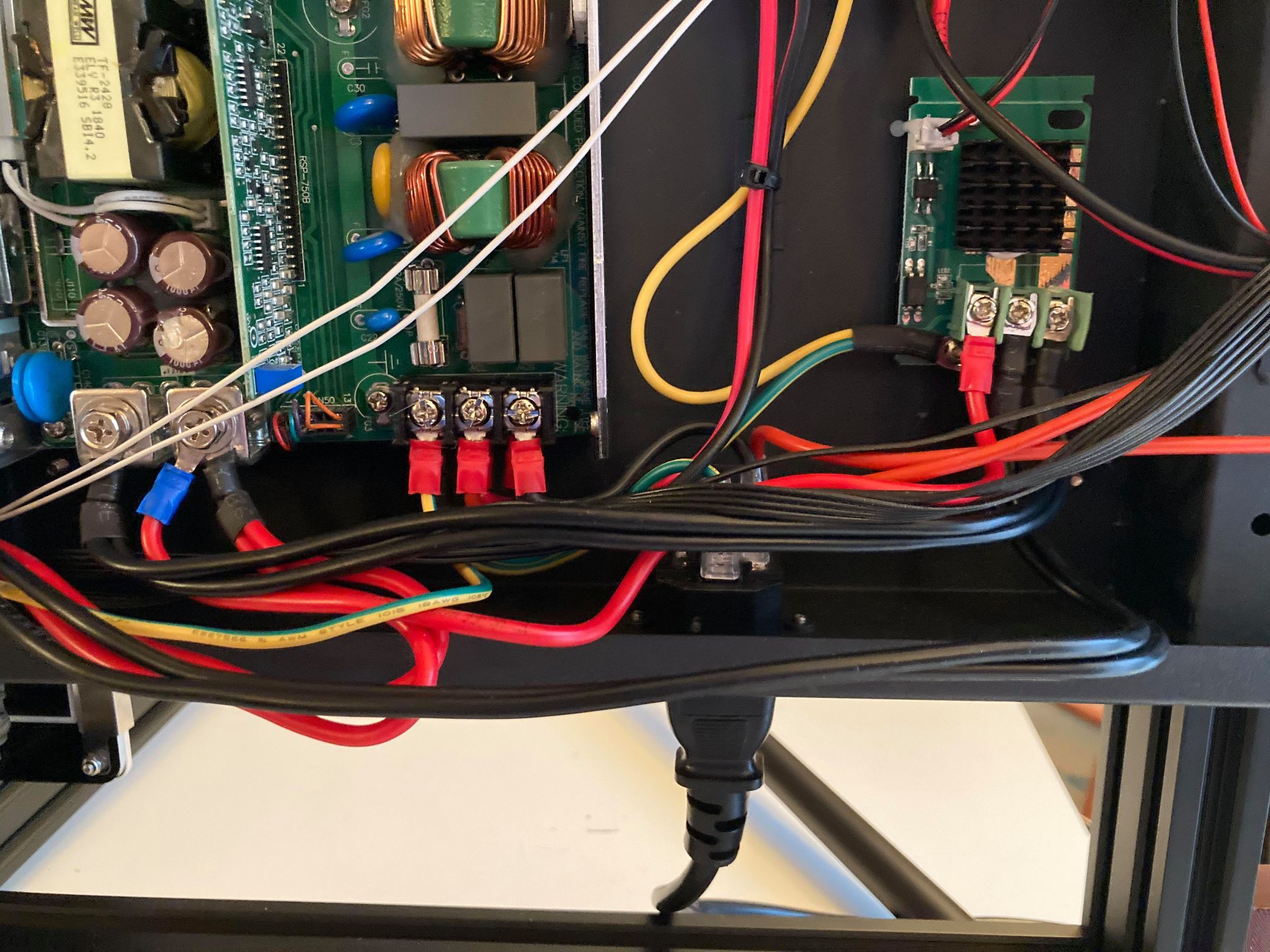 AntoninJus Posté(e) Février 2, 2021 Auteur Posté(e) Février 2, 2021 Il y a 1 heure, bernard3D a dit : La CR10 max a une double alimentation, une 24V 750W pour le bed et une 24V 75W pour l'électronique. As-tu vérifié que ton alimentation fonctionne toujours correctement et donne 24V à chaque sortie ? Alors la sortie d'alimentation ne me donne pas 24V mais 1.67V. Seulement il doit y avoir une différence de voltage entre les moments ou la consigne de température est de 0 degrés et entre le moment ou la chauffe du plateau est enclenché? Je vous transmet des photos du bloc pour pouvoir avoir un visuel: Le bed est alimenté par 5 fils (voir photo dans ma main) deux rouges, deux noirs et un vert/jaune