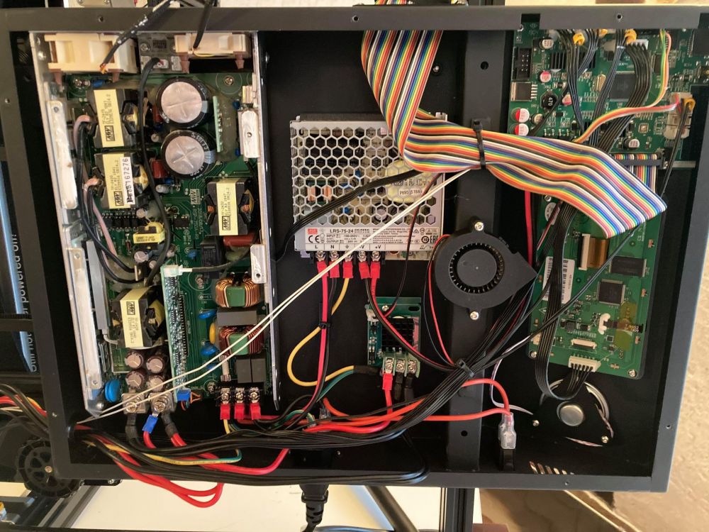 AntoninJus Posté(e) Février 1, 2021 Posté(e) Février 1, 2021 Bonjour à tous, je possède depuis quelques semaines une CR 10 max que j'ai acheté d'occasion. Tout fonctionnait très bien depuis le début et seulement je trouvais qu'elle faisait trop de bruit et pouvait déranger pendant la journée. J'ai décidé de changer les deux ventilateur de l'alimentation (oui il y en a deux uniquement dédiés à l'alimentation) par des Noctua. J'ai réalisé ce changement et pour ce faire j'ai du démonter le cache de l'unité de l'imprimante, ensuite ouvrir l'alimentation. Puis j'ai tout remonté en vérifiant bien que les deux ventilateurs fonctionnaient bien. La différence entre les ventilateurs Noctua et ceux d'origine est qu'ils ne possèdent que deux fils. Il reste donc un fil blanc dans le vide après installation des Noctua. Jusqu'ici tout va bien, et je passe à la phase de remontage de l'alimentation et de l'unité. (j'avais bien mis hors tension l'imprimante durant les phases de montage/démontage). Seulement j'ai voulu lancer une impression et le plateau chauffant ne chauffait plus. La sonde donnait belle et bien la bonne température et la consigne était bonne mais le plateau chauffant ne chauffait pas du tout. J'ai bougé les fils dans tous les sens pour voir si ça n'était pas un faux contact et rien du tout.. Pendant ces phases de tests je me suis également aperçu que l'cran LCD devenait blanc et inutilisable après quelques minutes de mise en route de la consigne du plateau chauffant. Suite à cela j'ai mesuré la tension sur les différentes bornes du plateau chauffant et elle n'était évidemment pas de 24V comme indiqué sur le plateau mais de 1.67V... Je ne sais pas d'ou le problème peut venir. Je suis à disposition si vous voulez d'avantages de détails. J'espère ne pas avoir abimé de composant. Antoninjus
